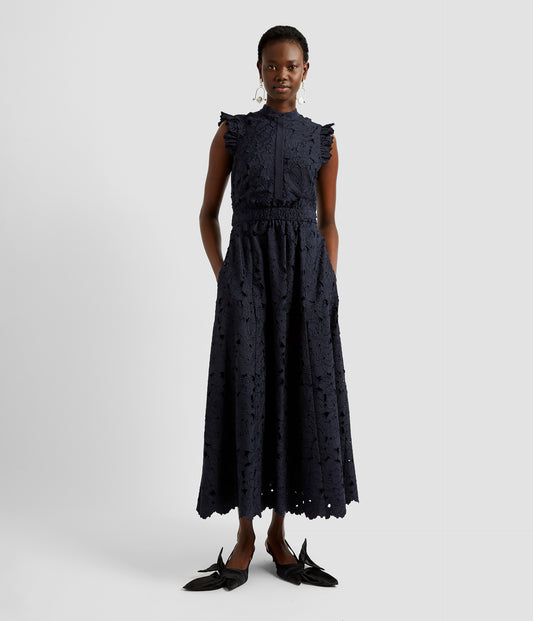 Embroidered Fil Coupé Jacquard Asymmetric Midi Dress