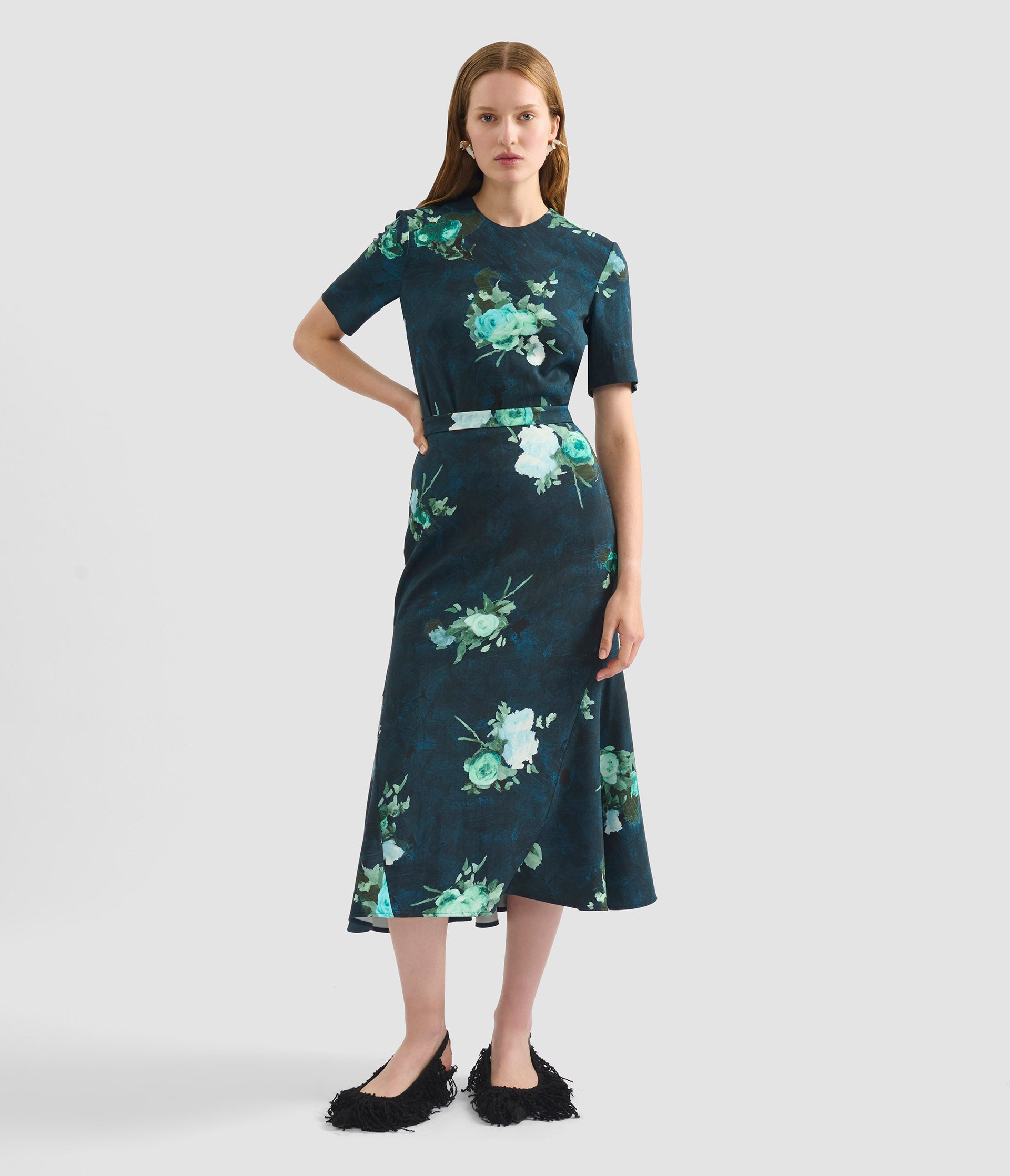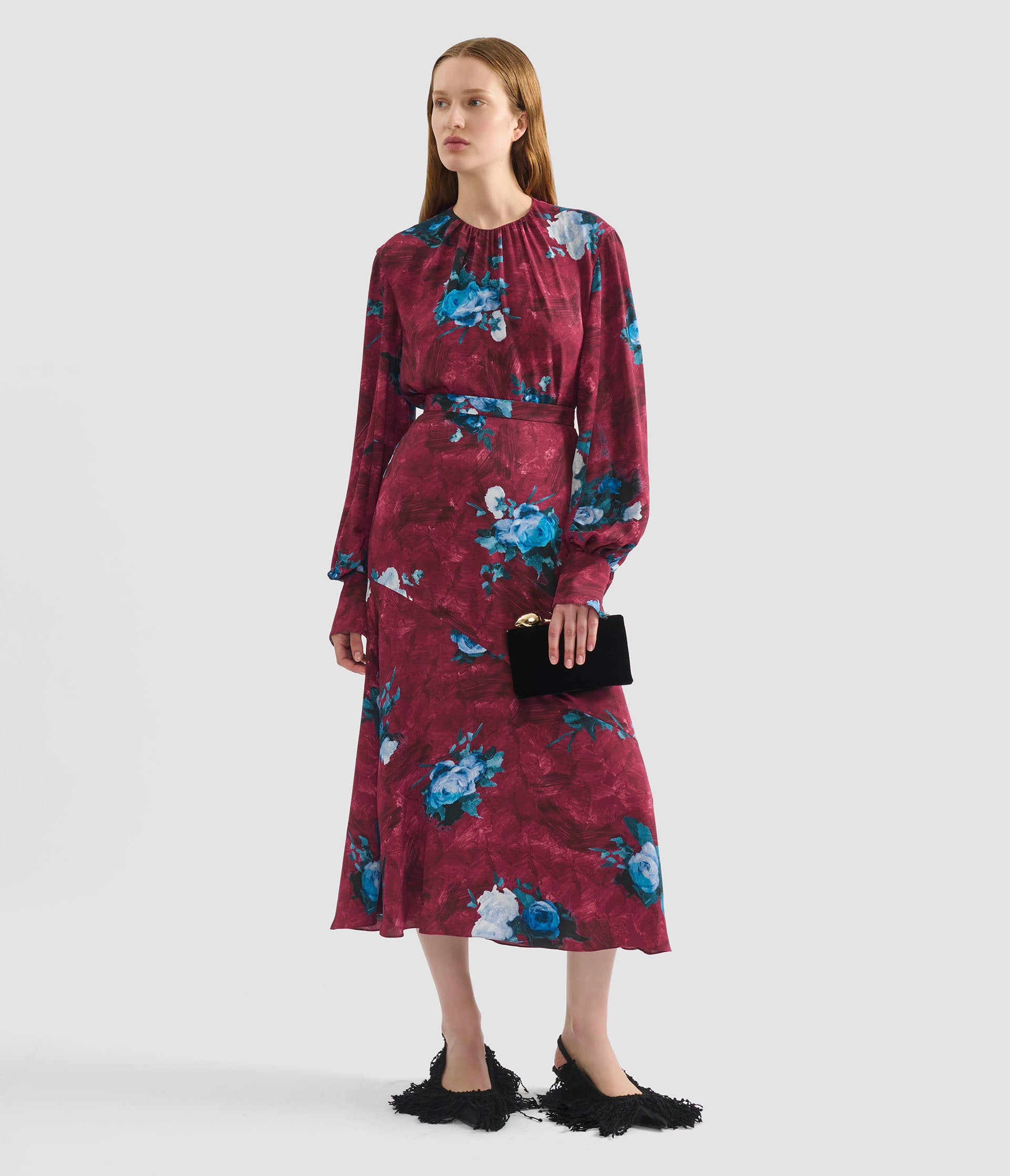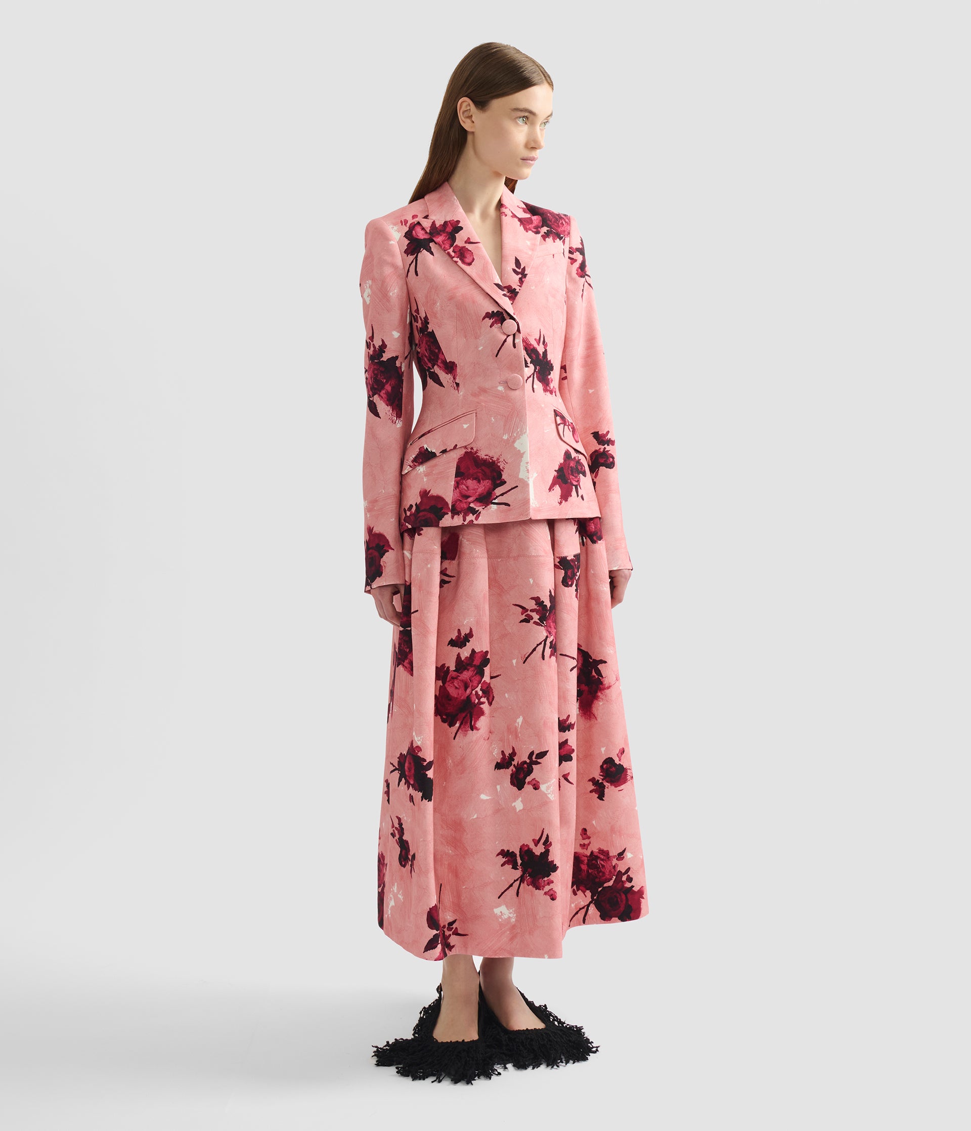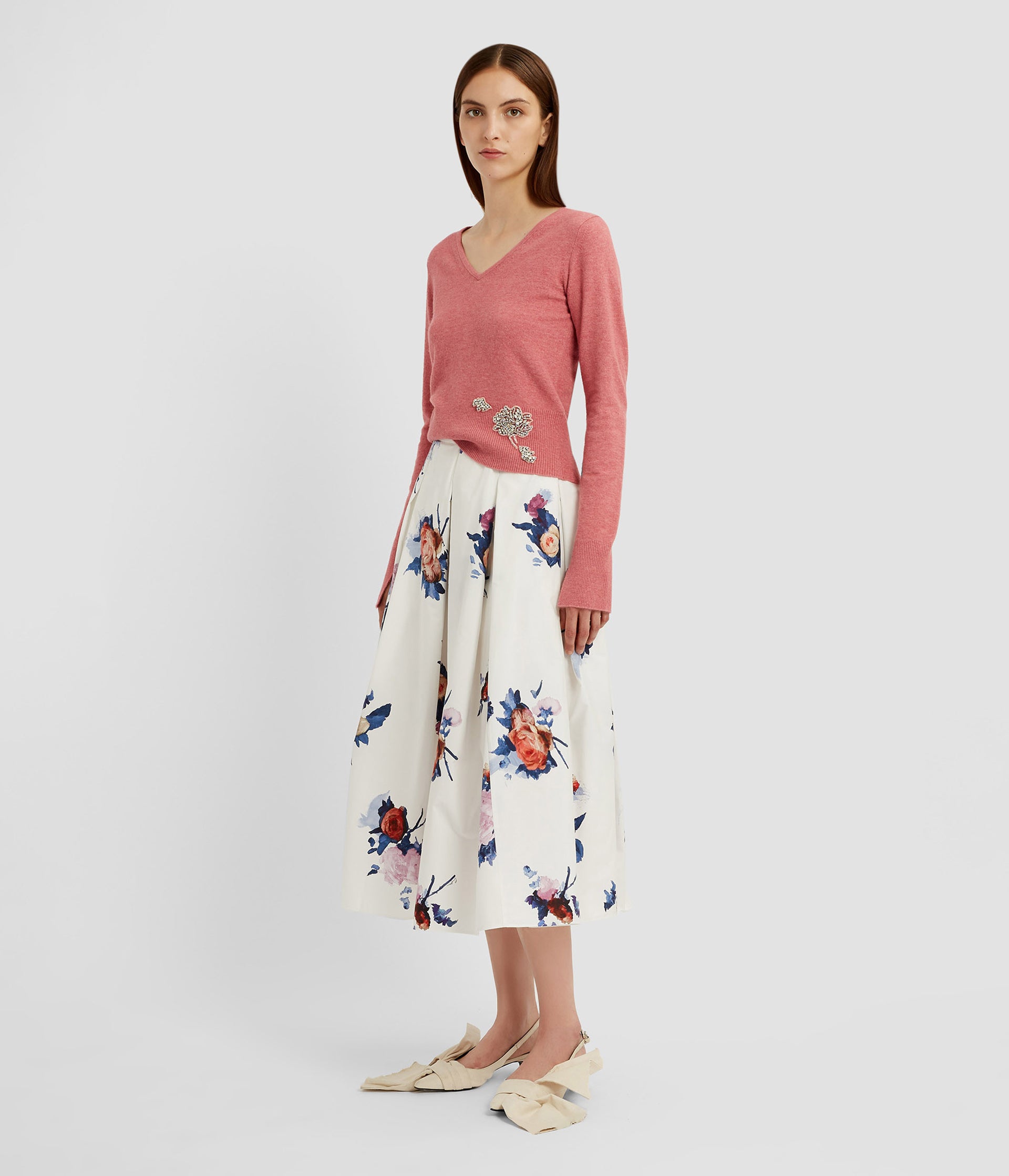 Floral Print Chiné Taffeta Gathered Midi Skirt