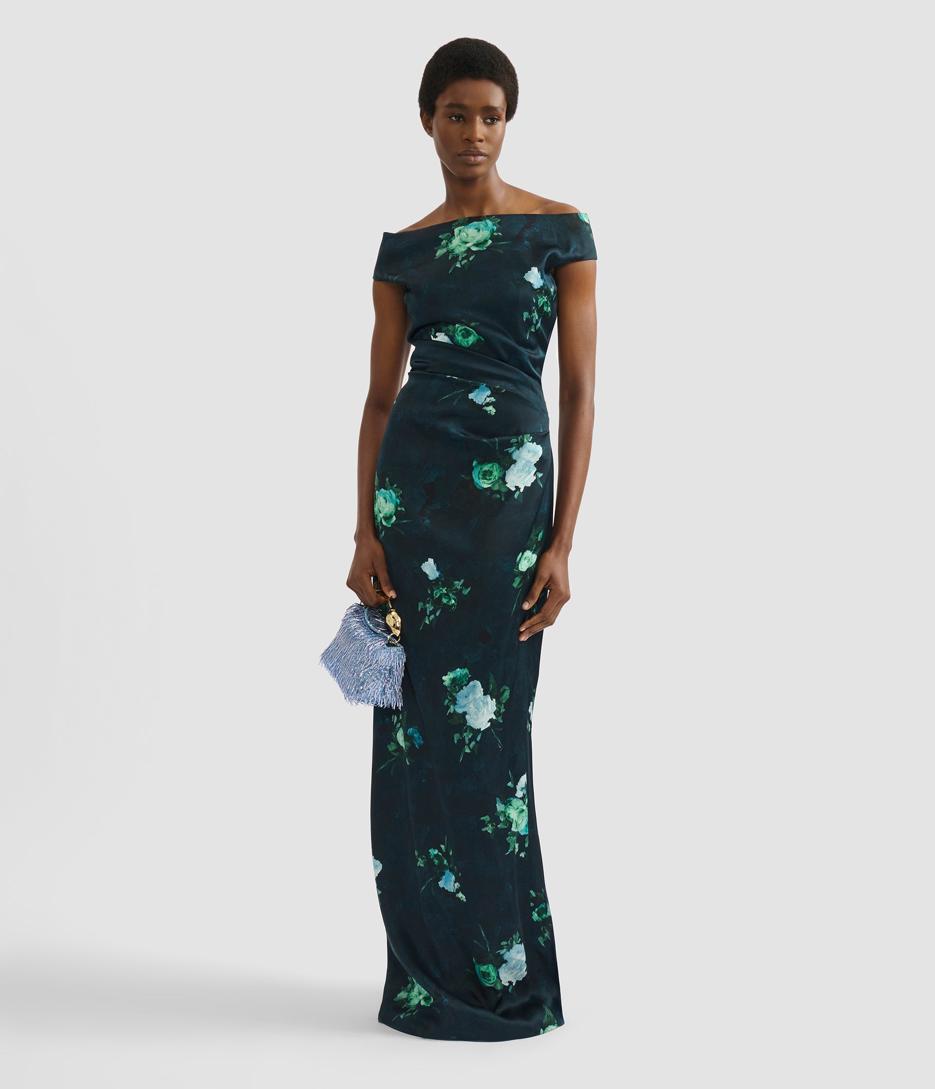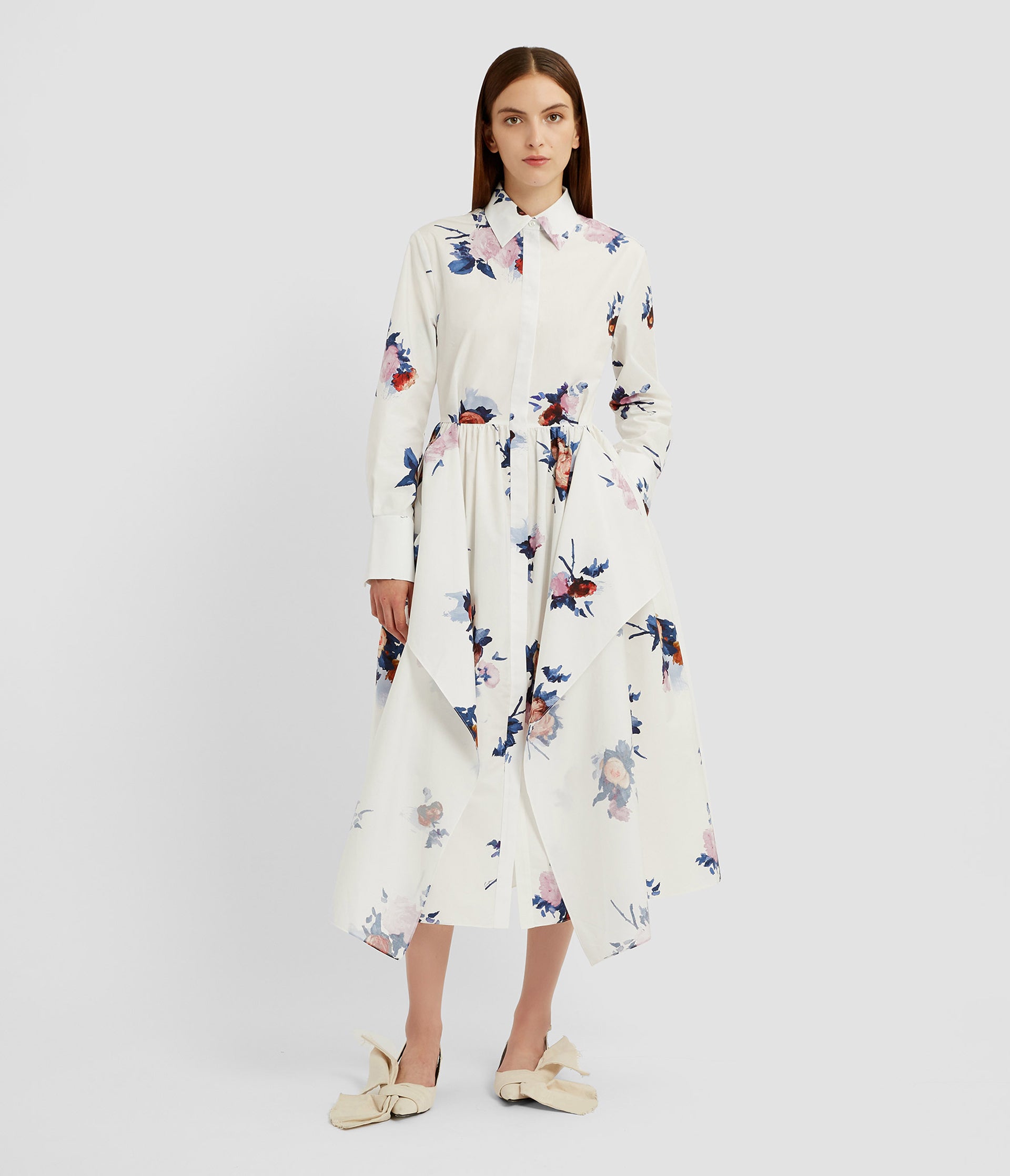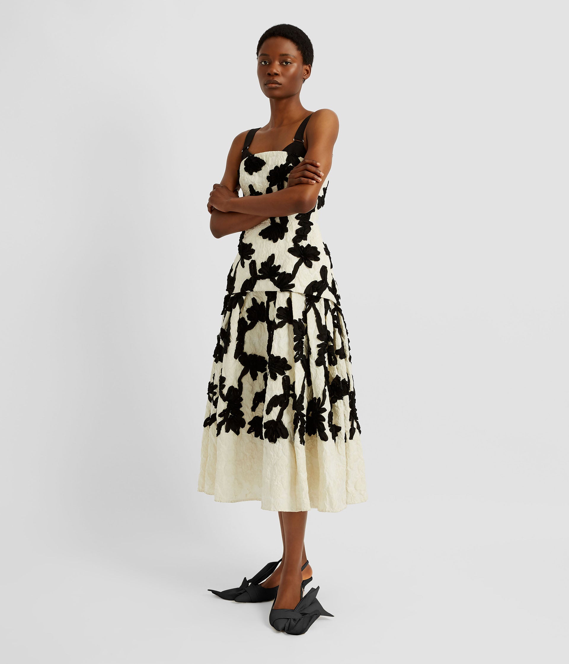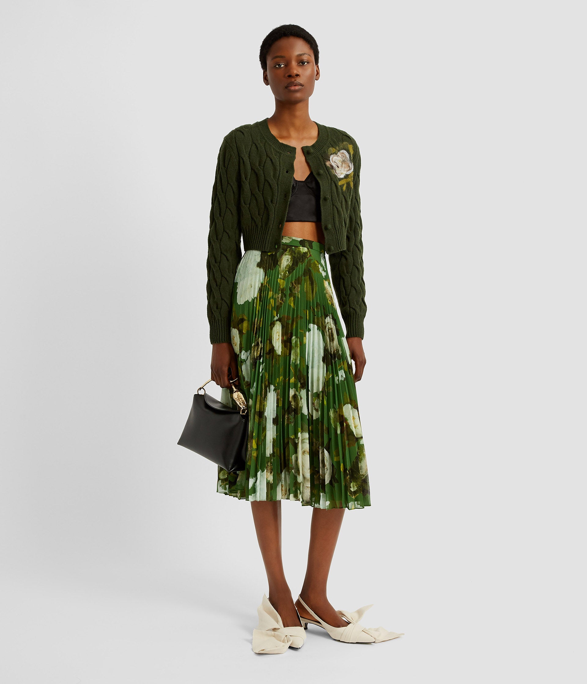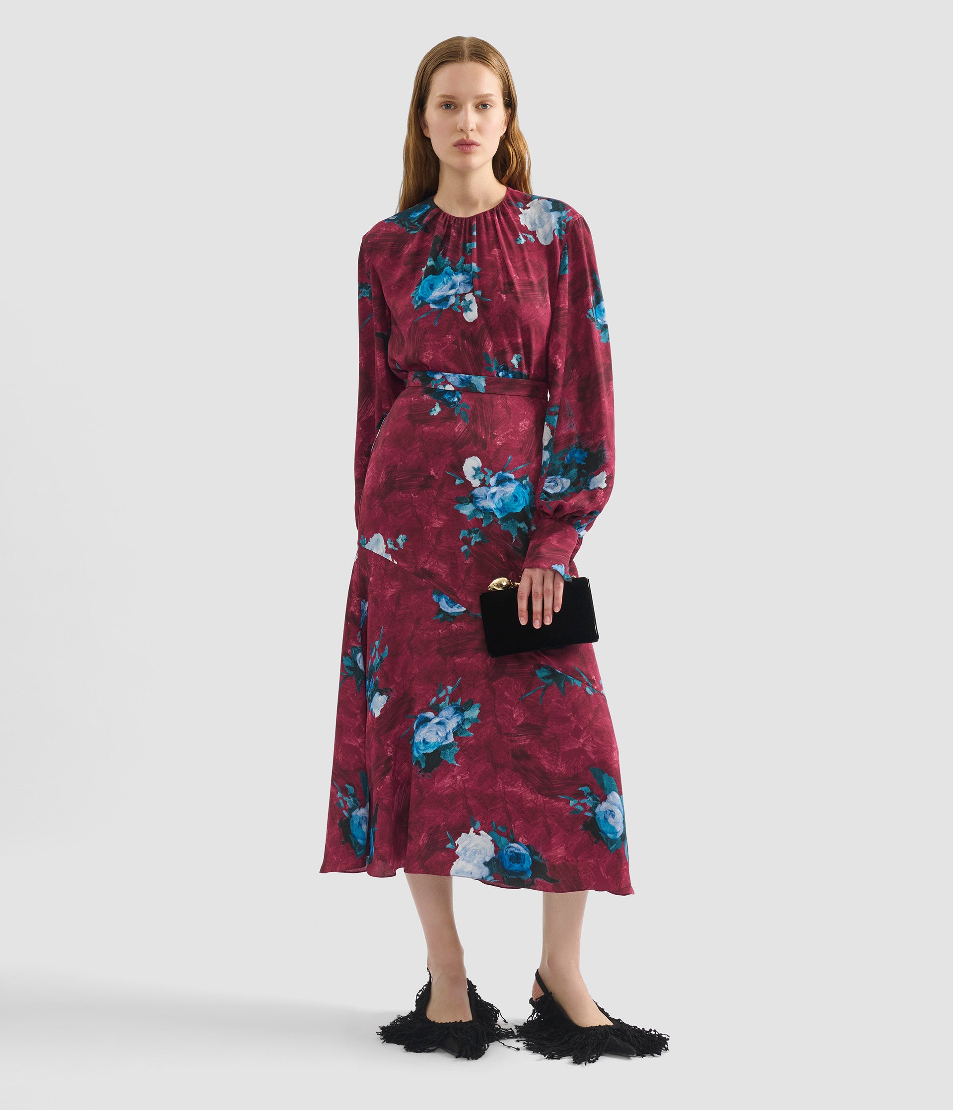 Floral Print Chiné Taffeta Gathered Midi Skirt
