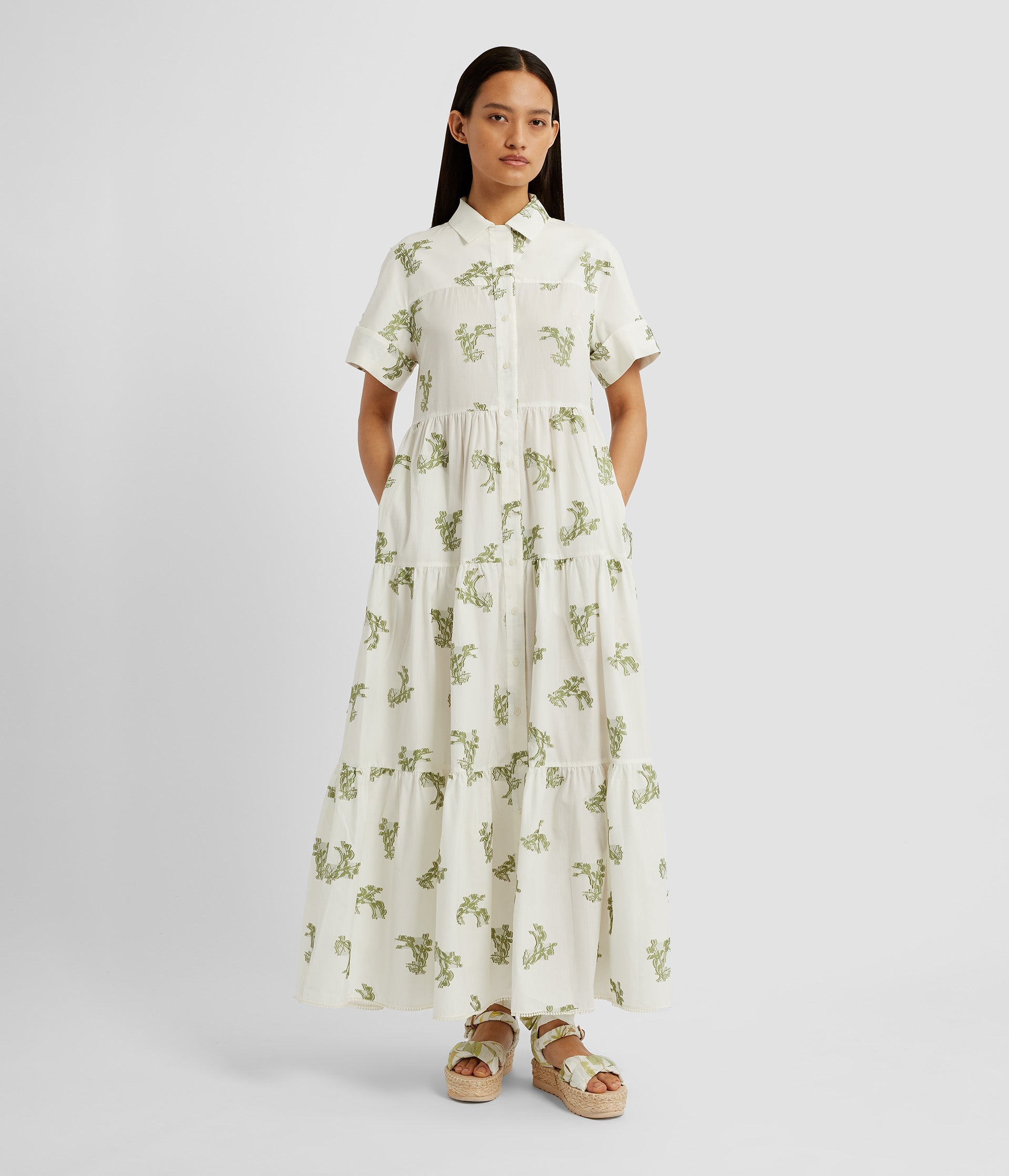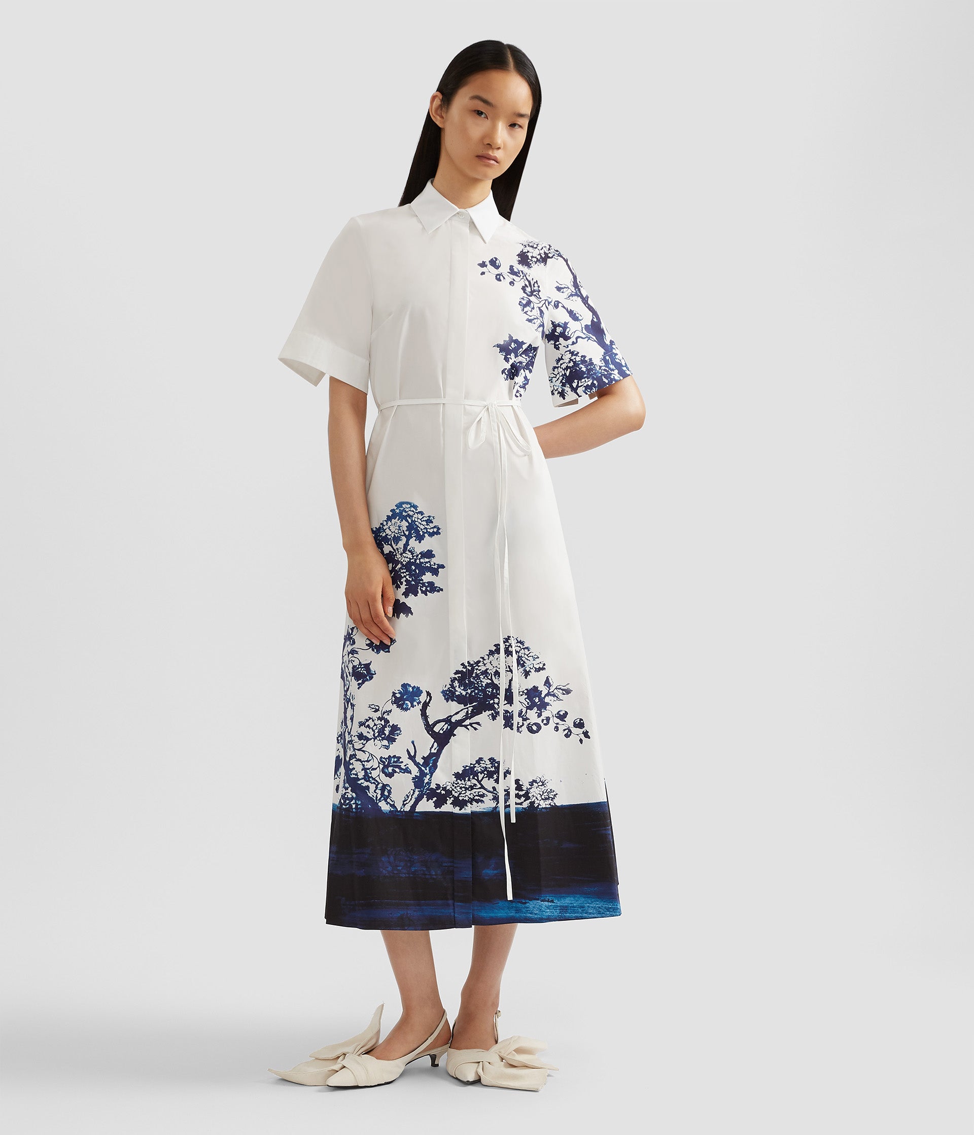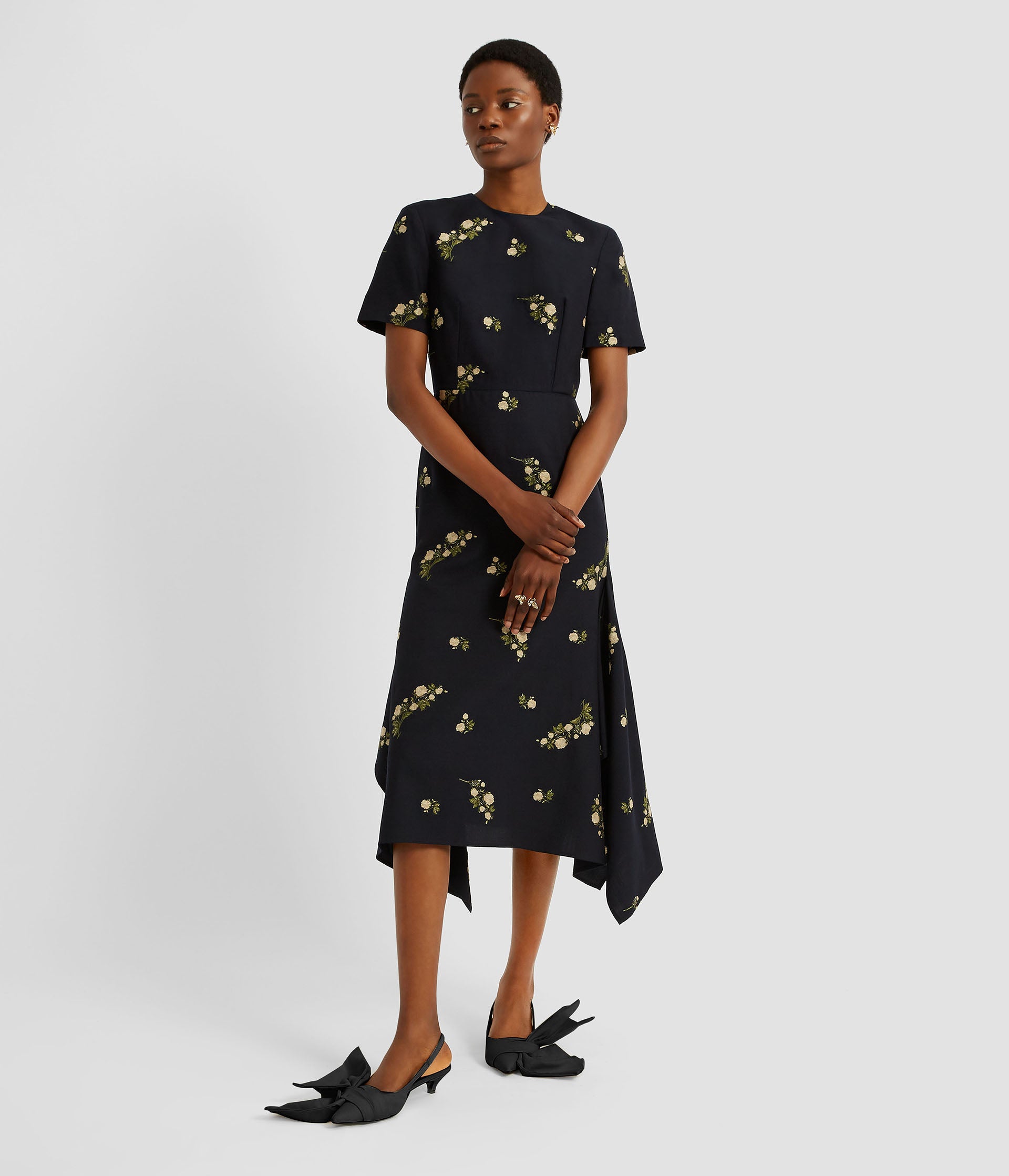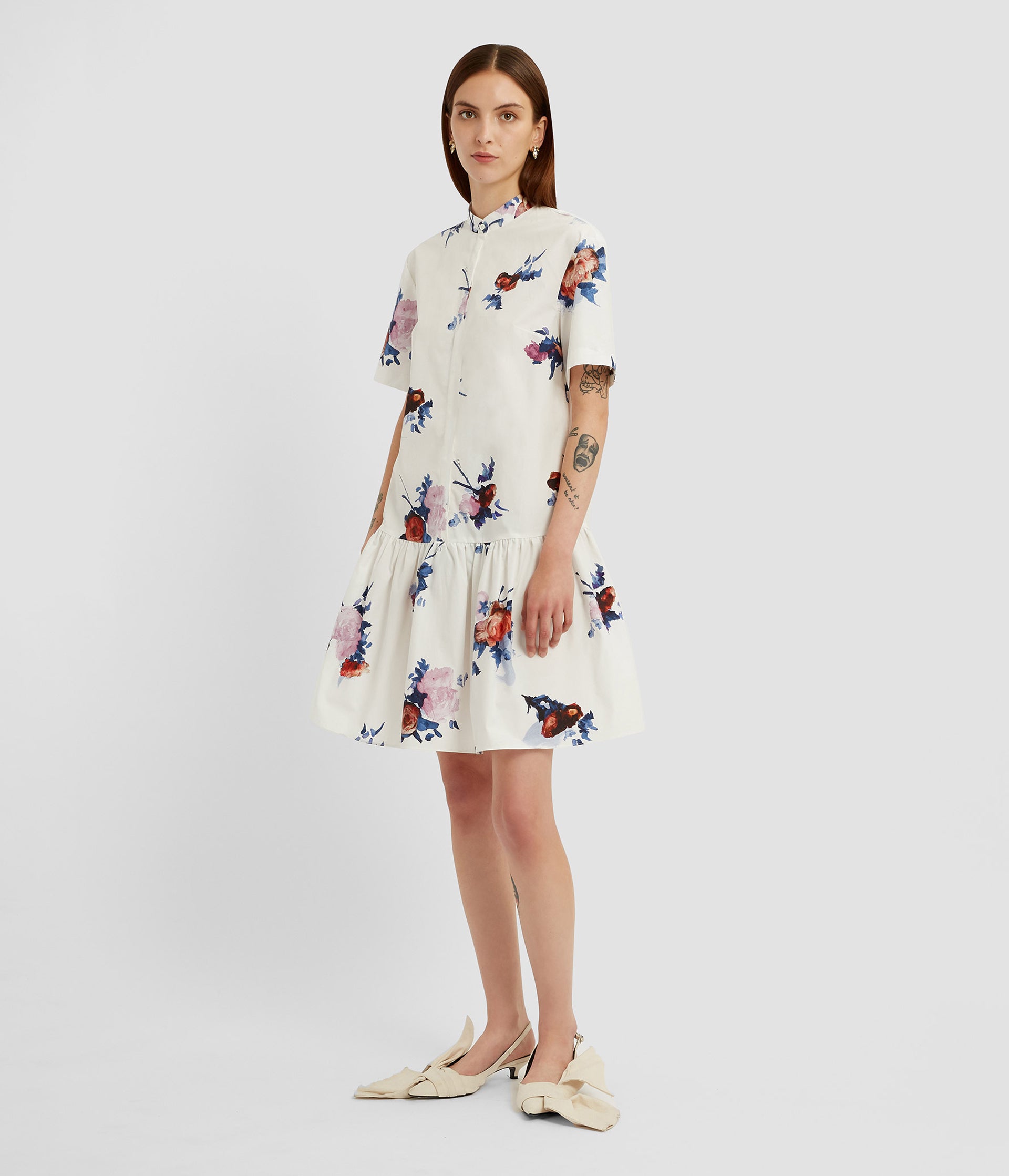 Floral Print Chiné Taffeta Gathered Midi Skirt
