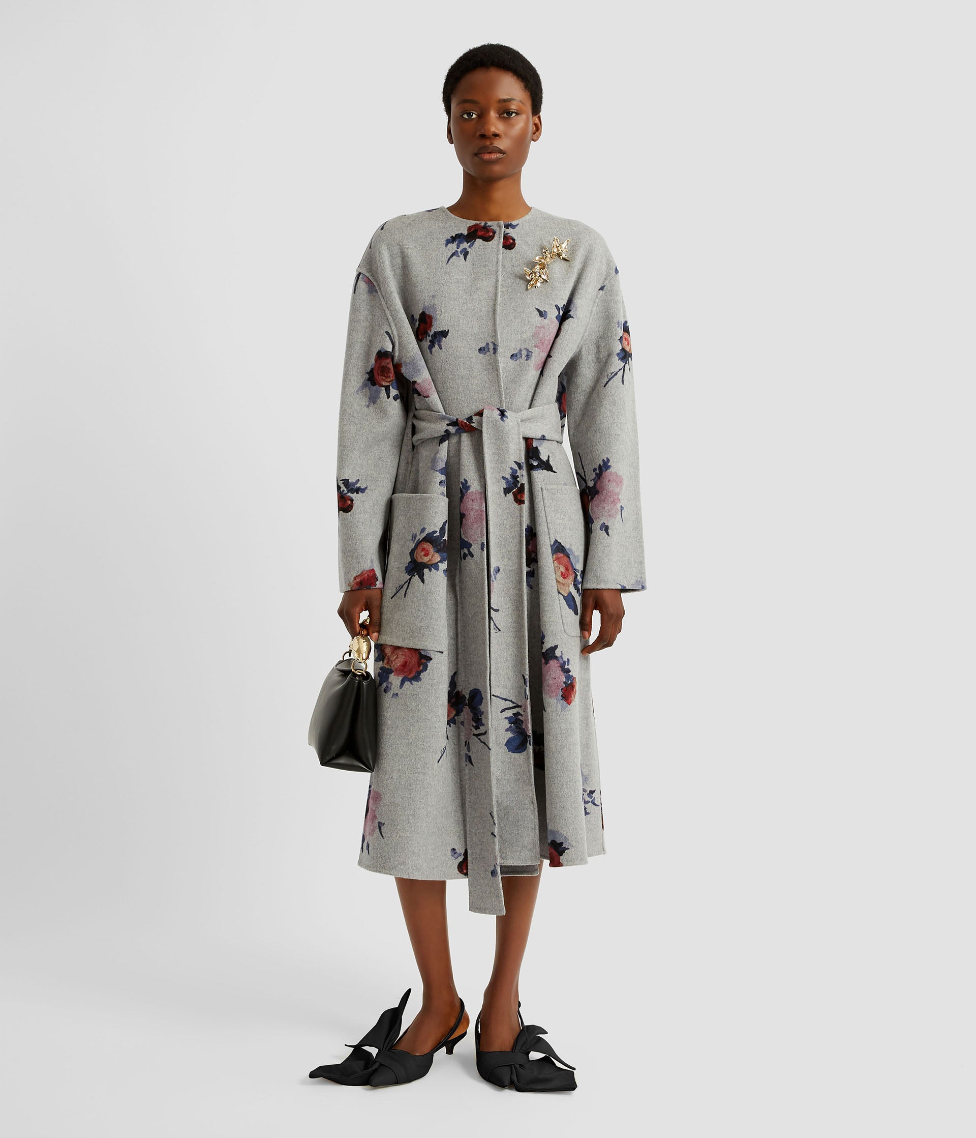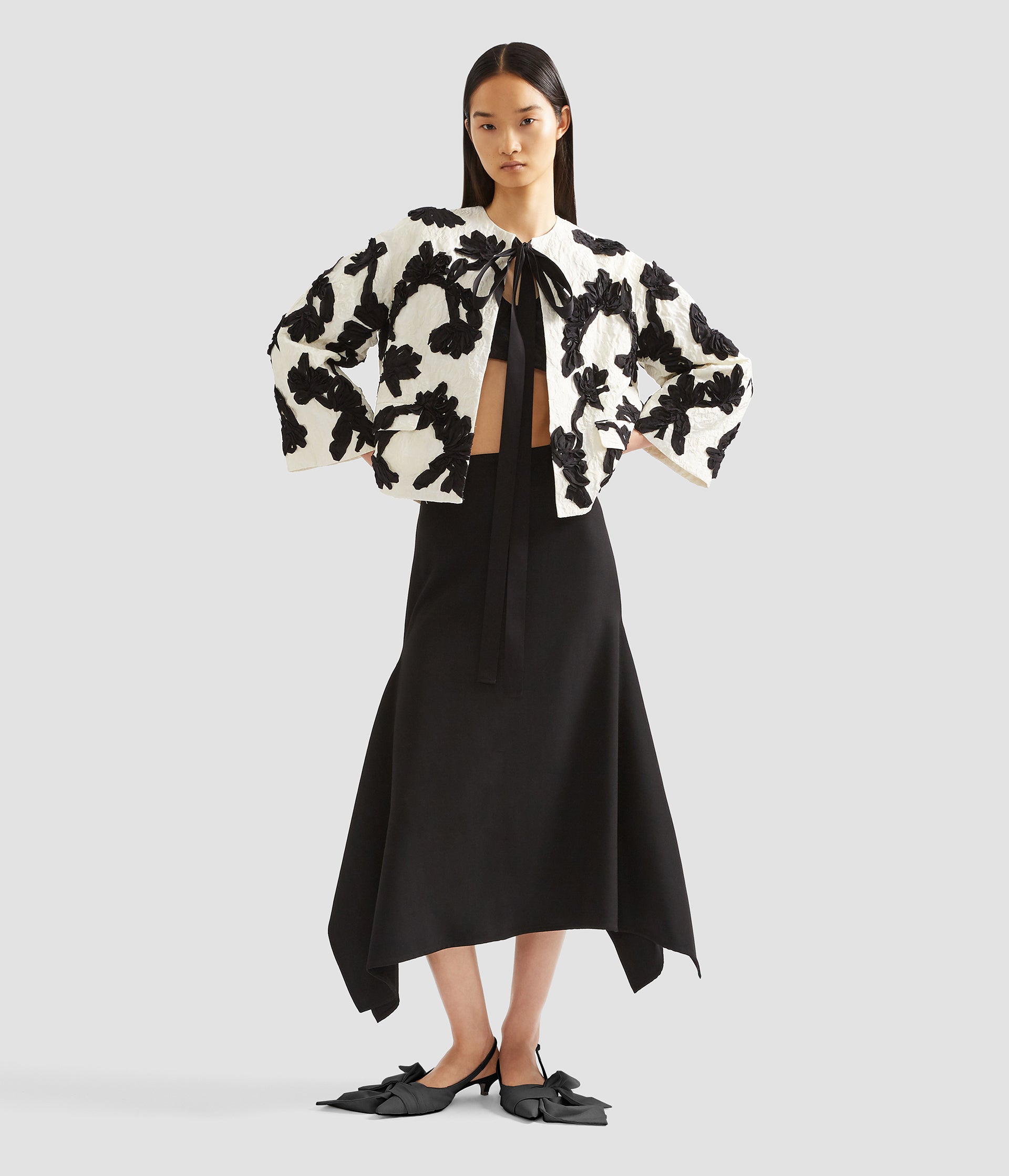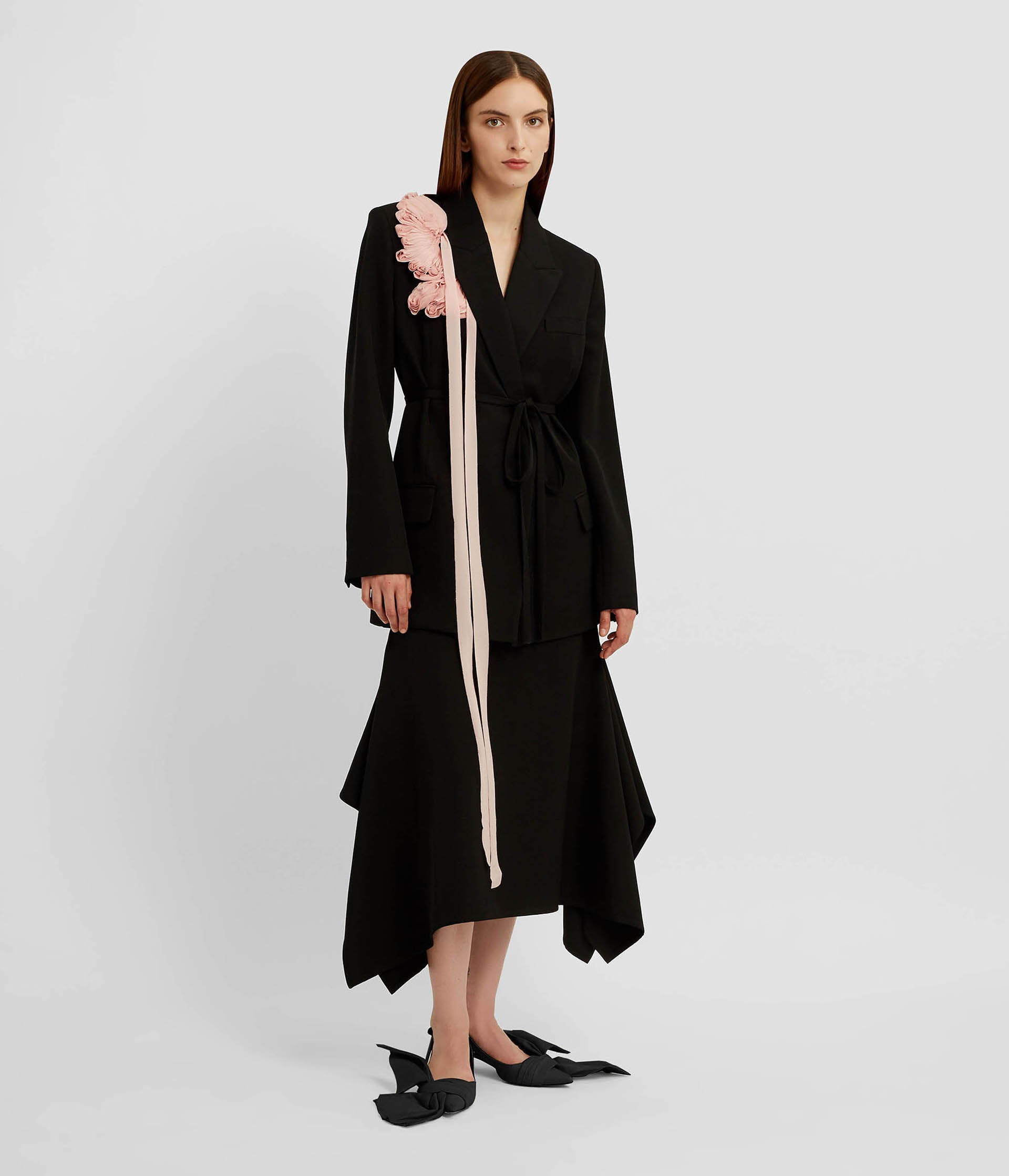 Floral Appliqué Grain De Poudre Tie-Waist Blazer