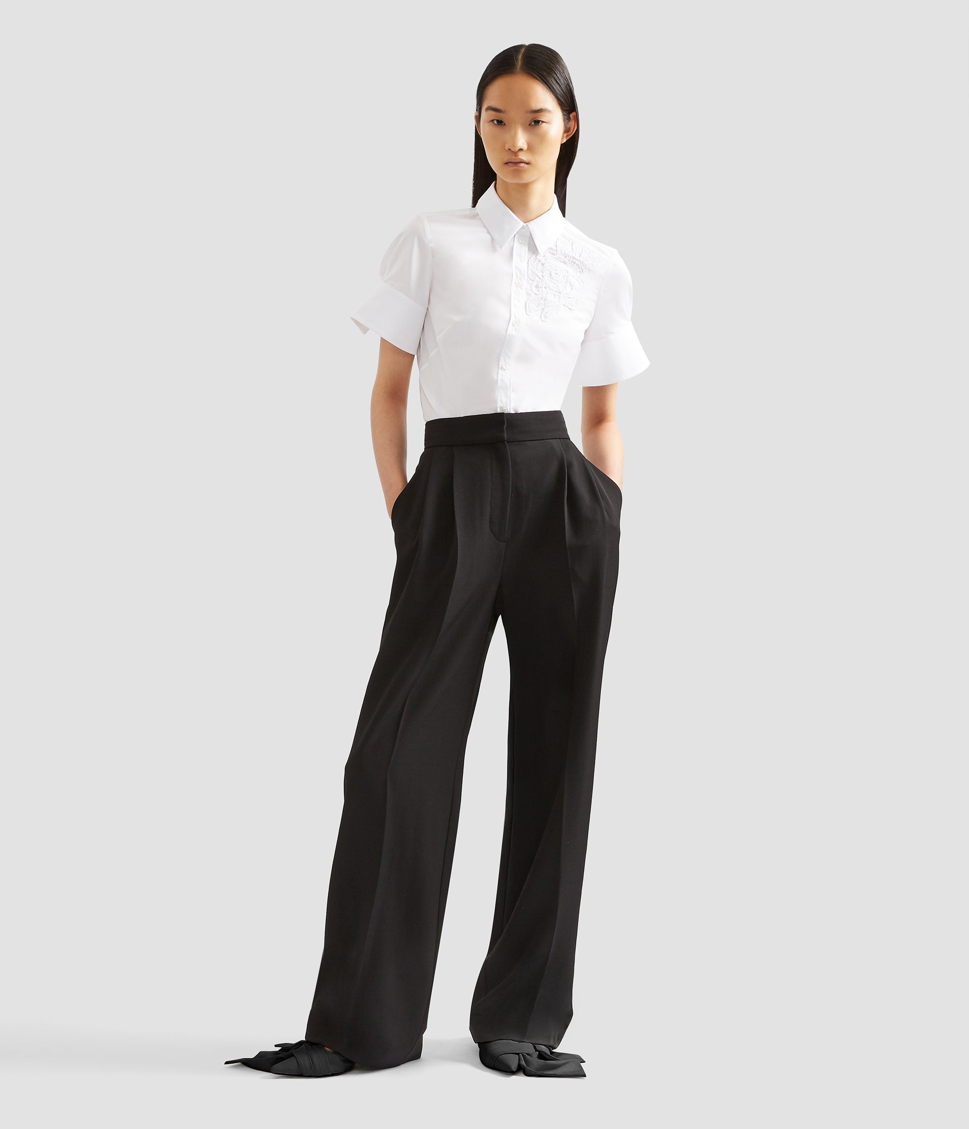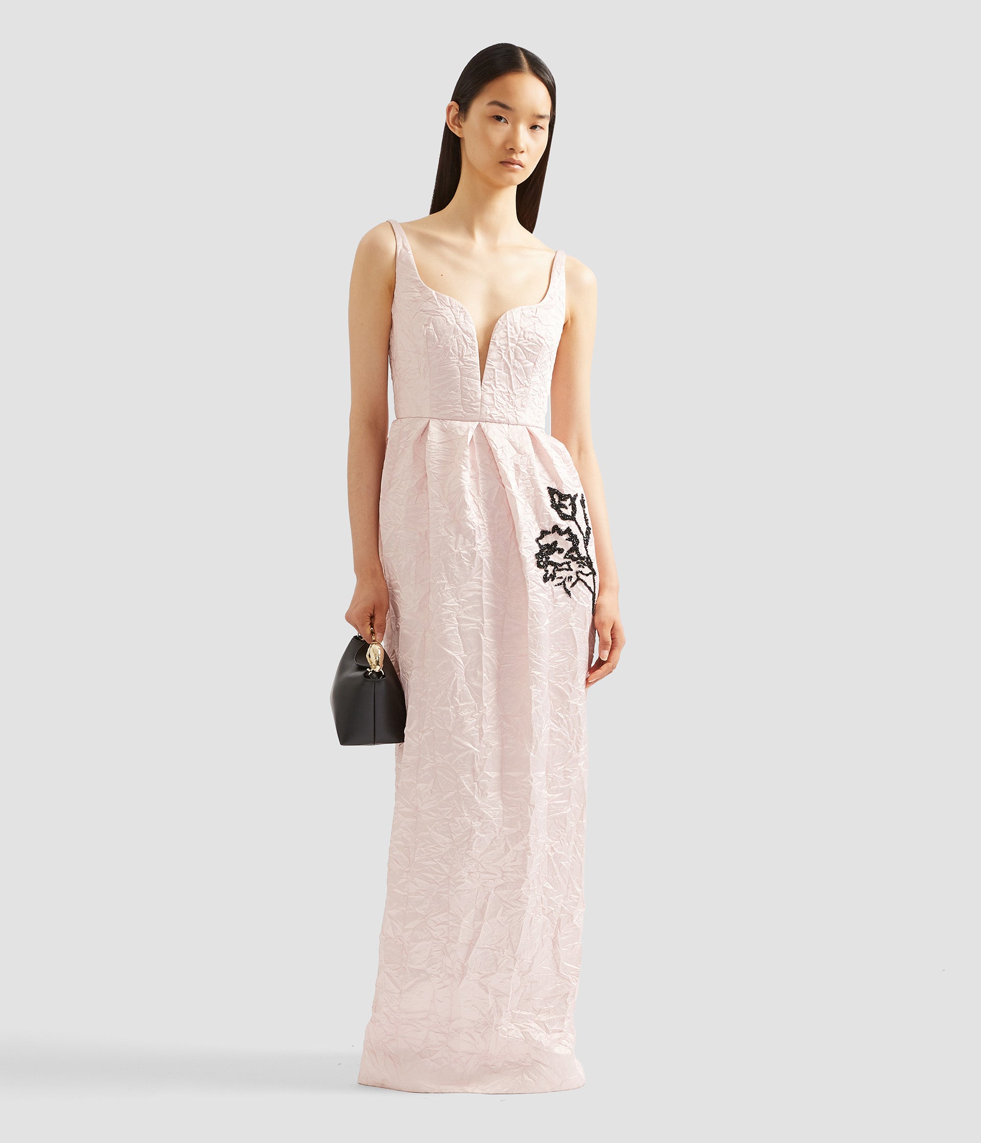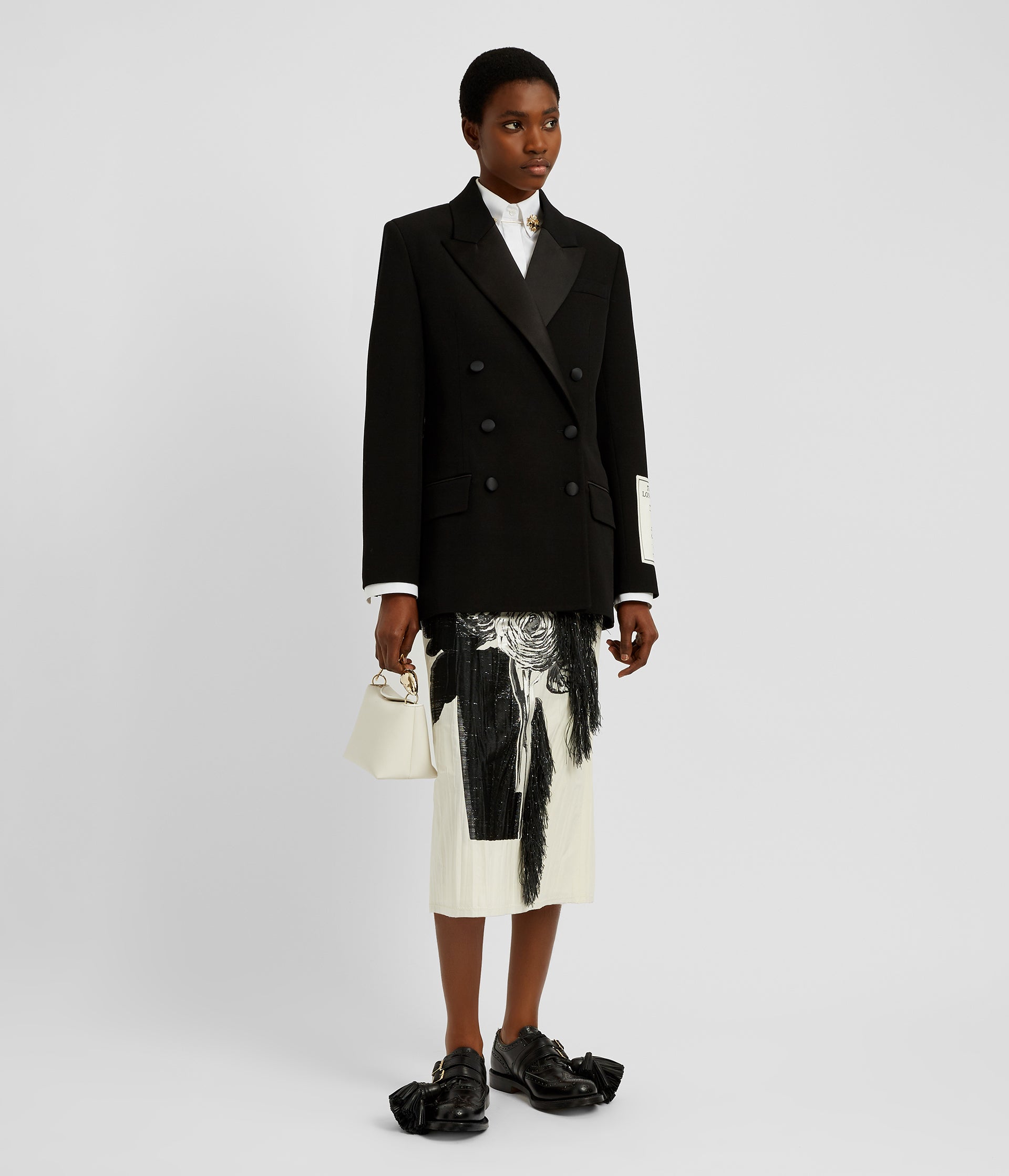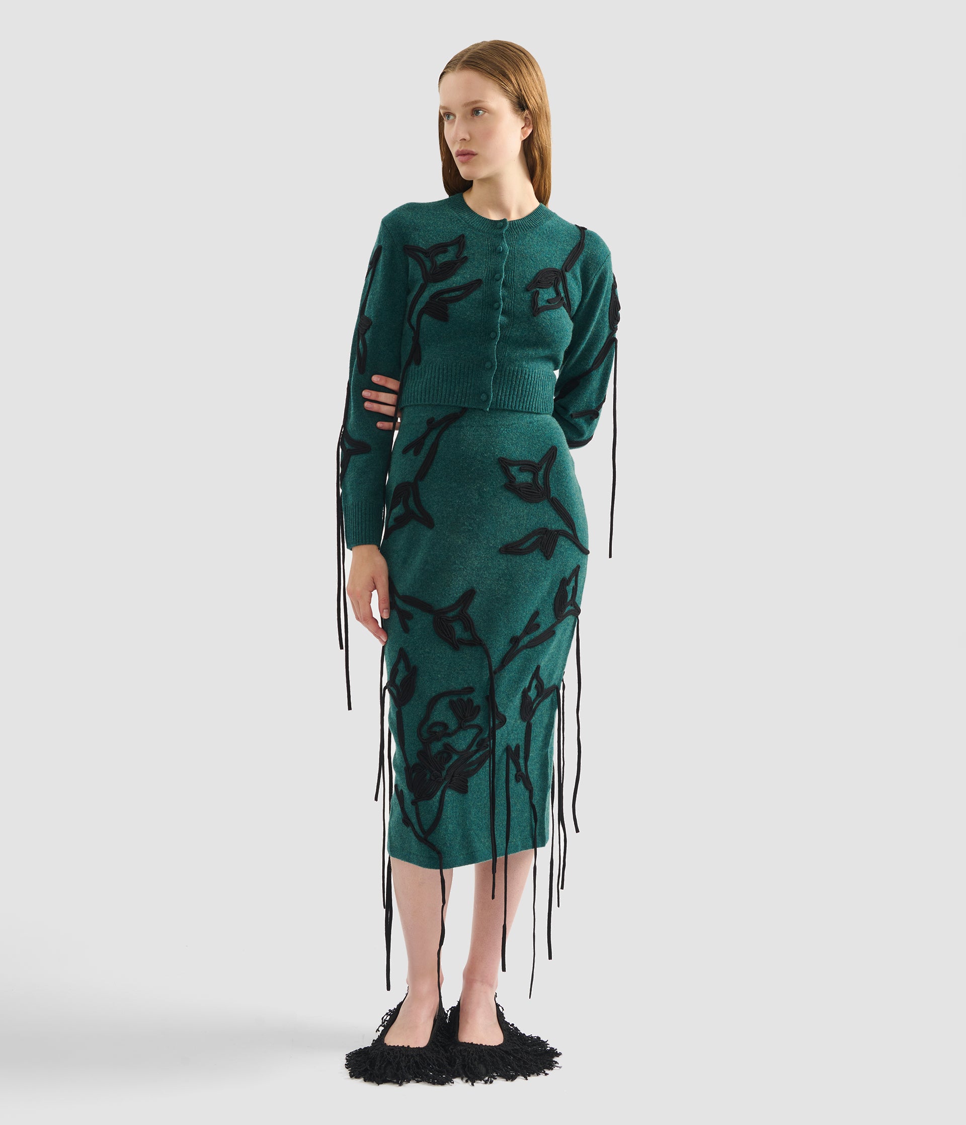 Floral Appliqué Grain De Poudre Tie-Waist Blazer