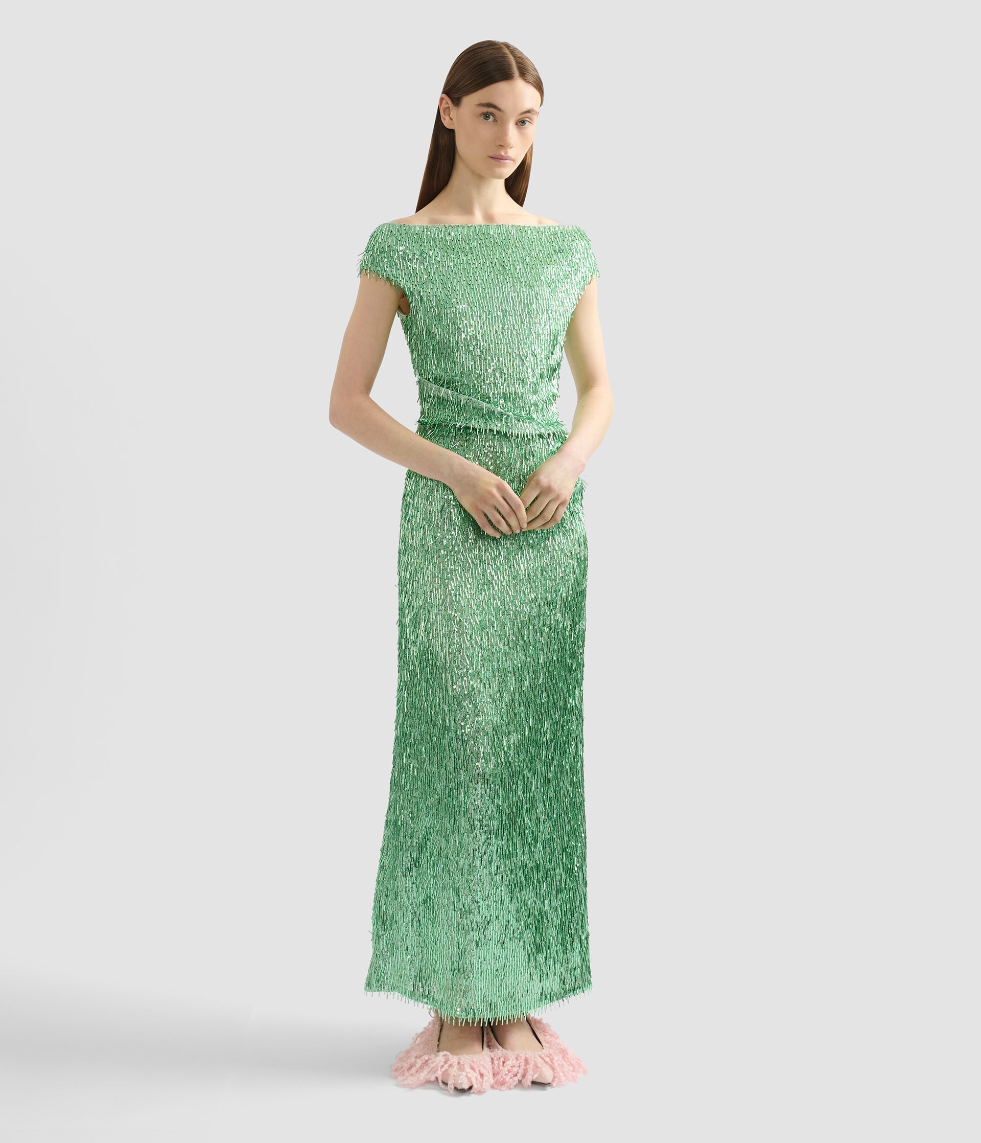 Bugle Sequin Off-The-Shoulder Midi Dress