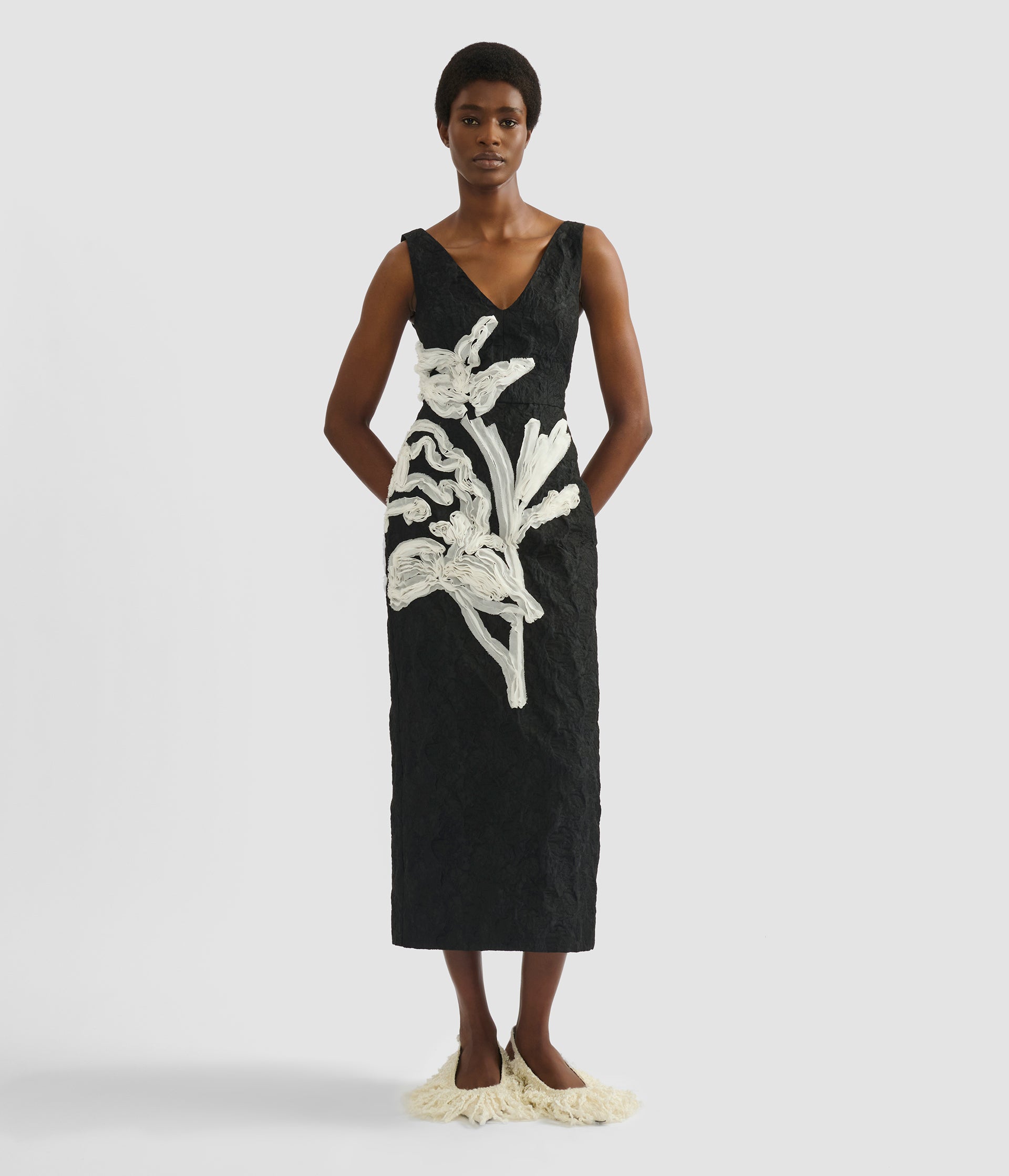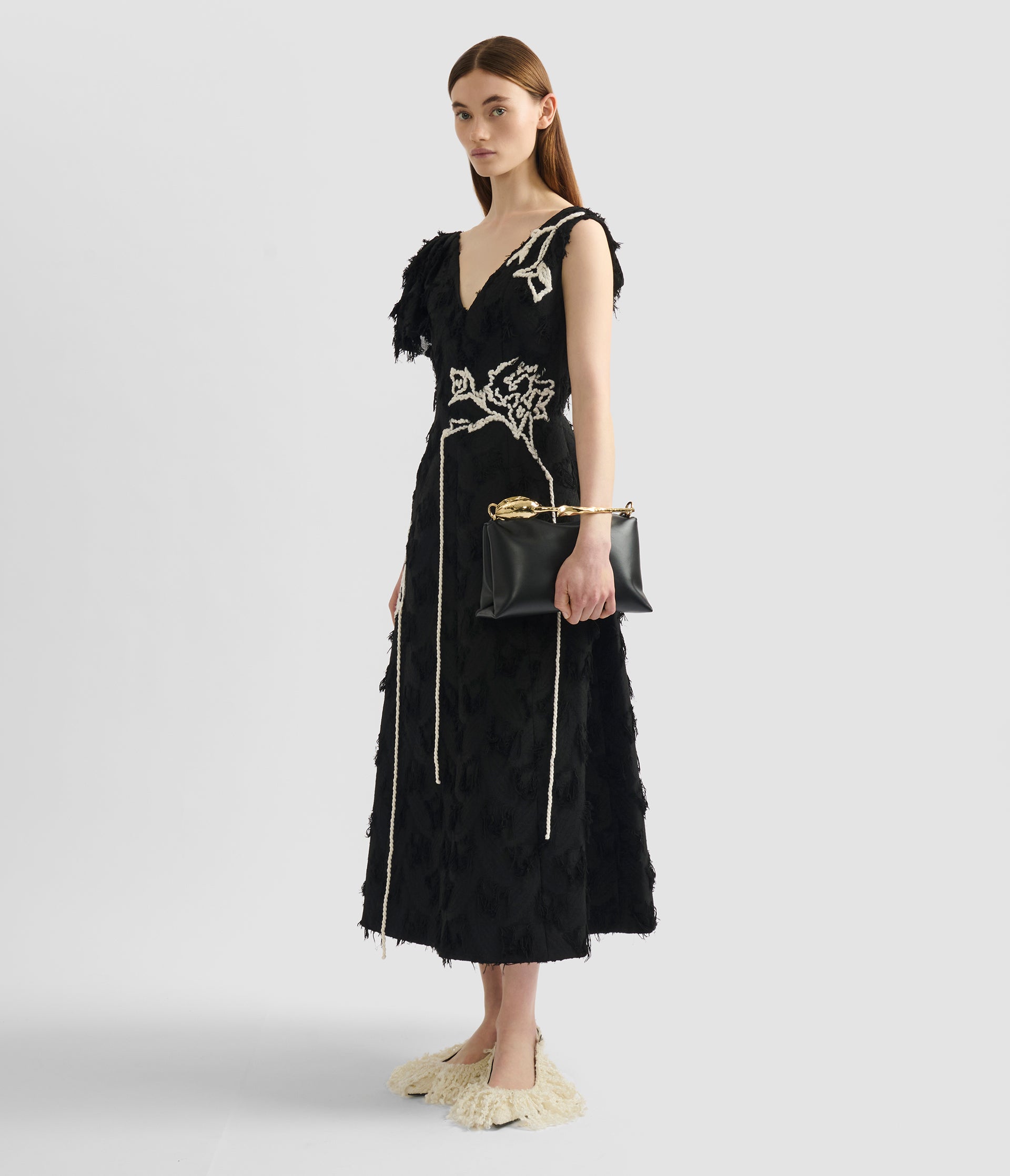 Embroidered Fil Coupé Jacquard Asymmetric Midi Dress
