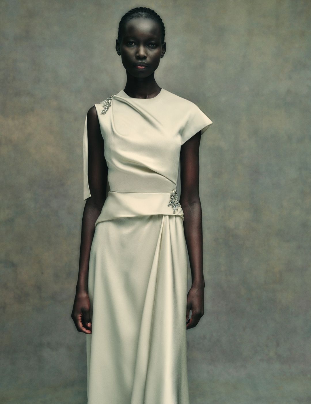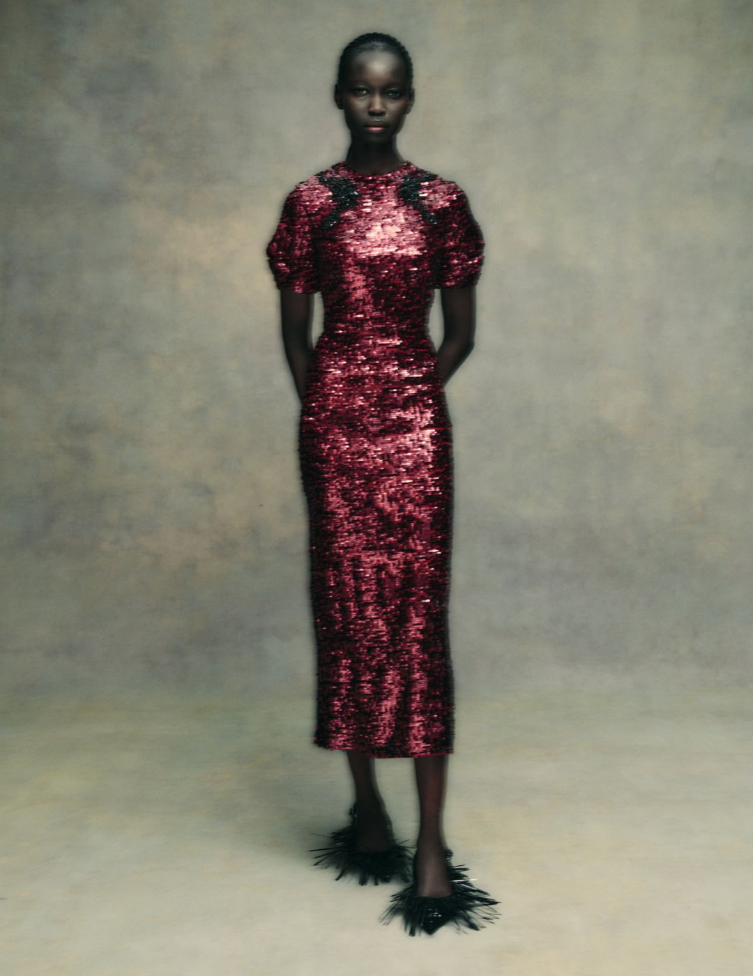 ERDEM’s Holiday 2025 Collection captures an elegantly dramatic mood. Striking silhouettes in tactile fabrics are imagined in an evocative palette of ruby-red, champagne and black, complete with precious embellishment.