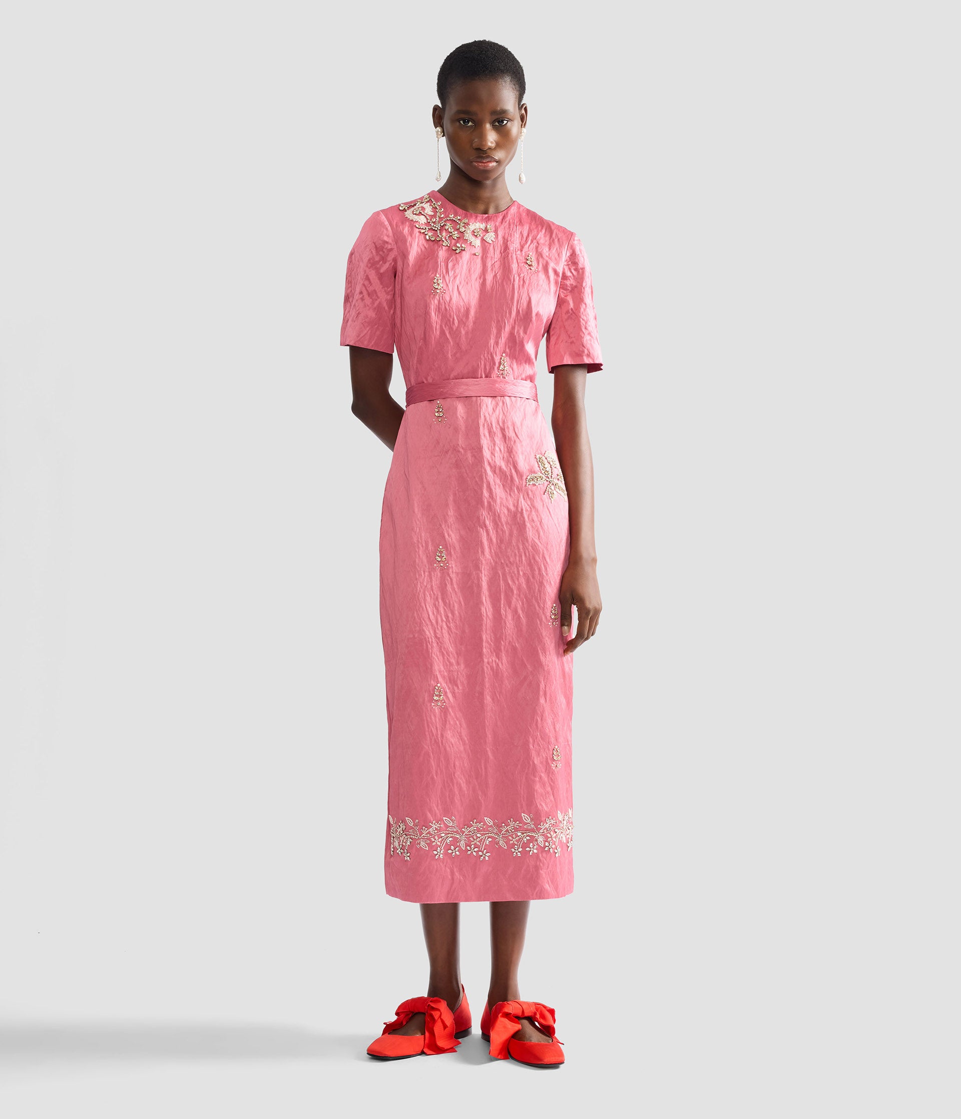 Floral Embroidered Mikado Sleeveless Midi Dress