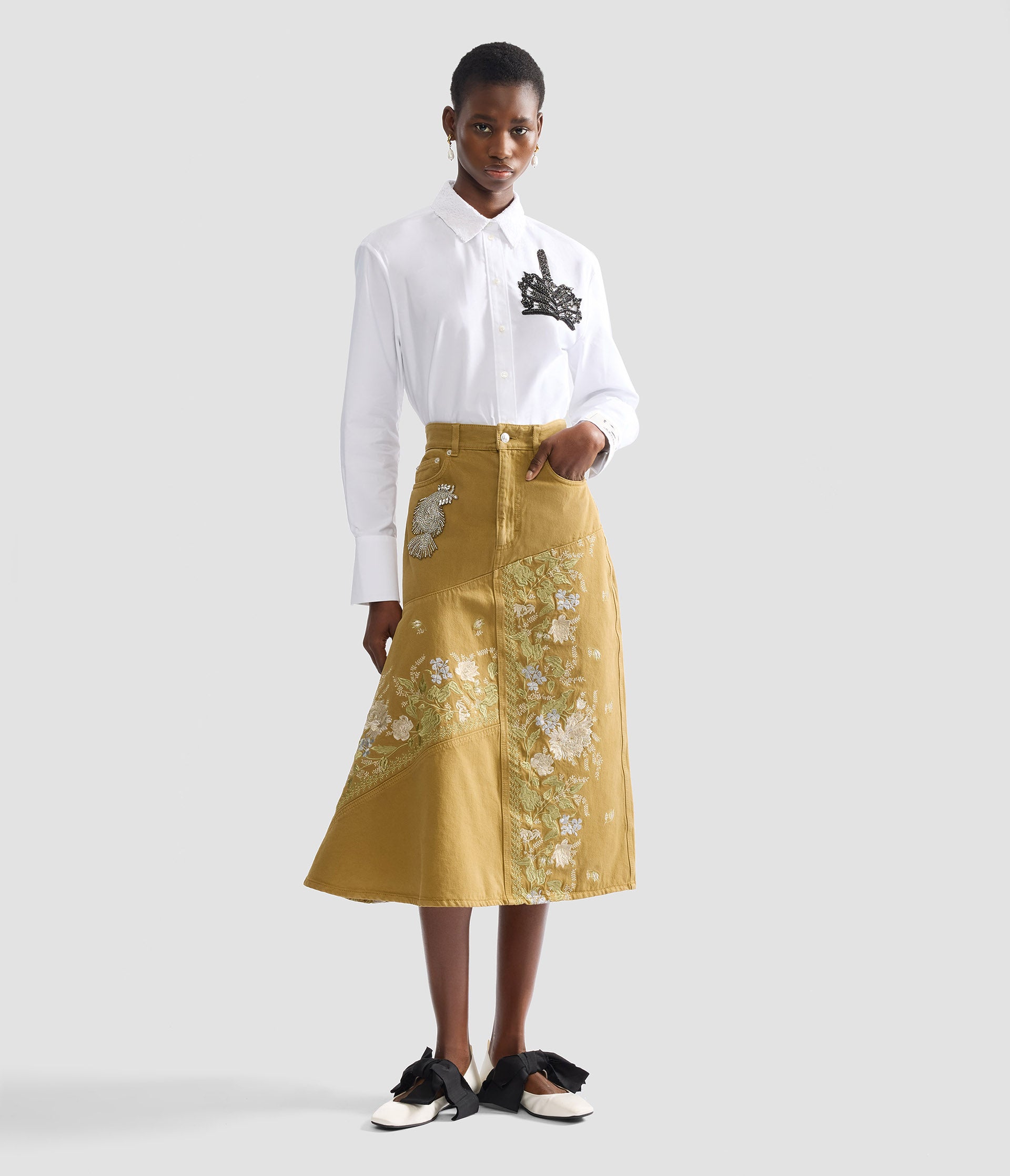 Embroidered Cotton Faille Sleeveless Midi Dress