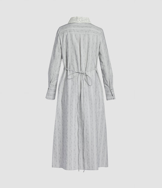 Ditsy Cotton Stripe Tie-Waisted Midi Dress