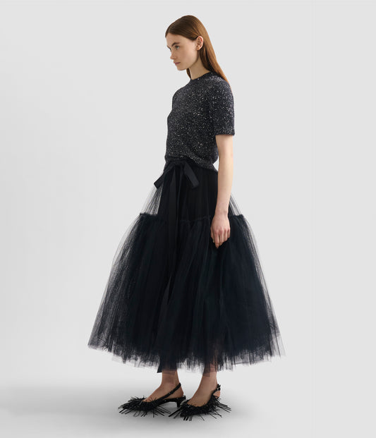 Bugle Sequin Off-The-Shoulder Midi Dress