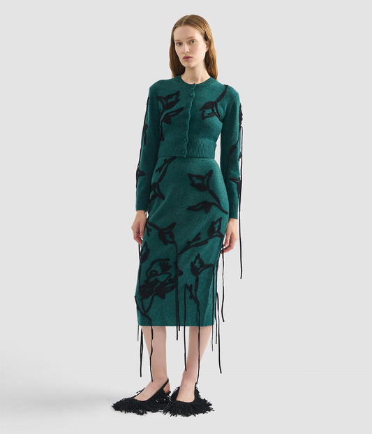 Floral Print Chiné Taffeta Gathered Midi Skirt