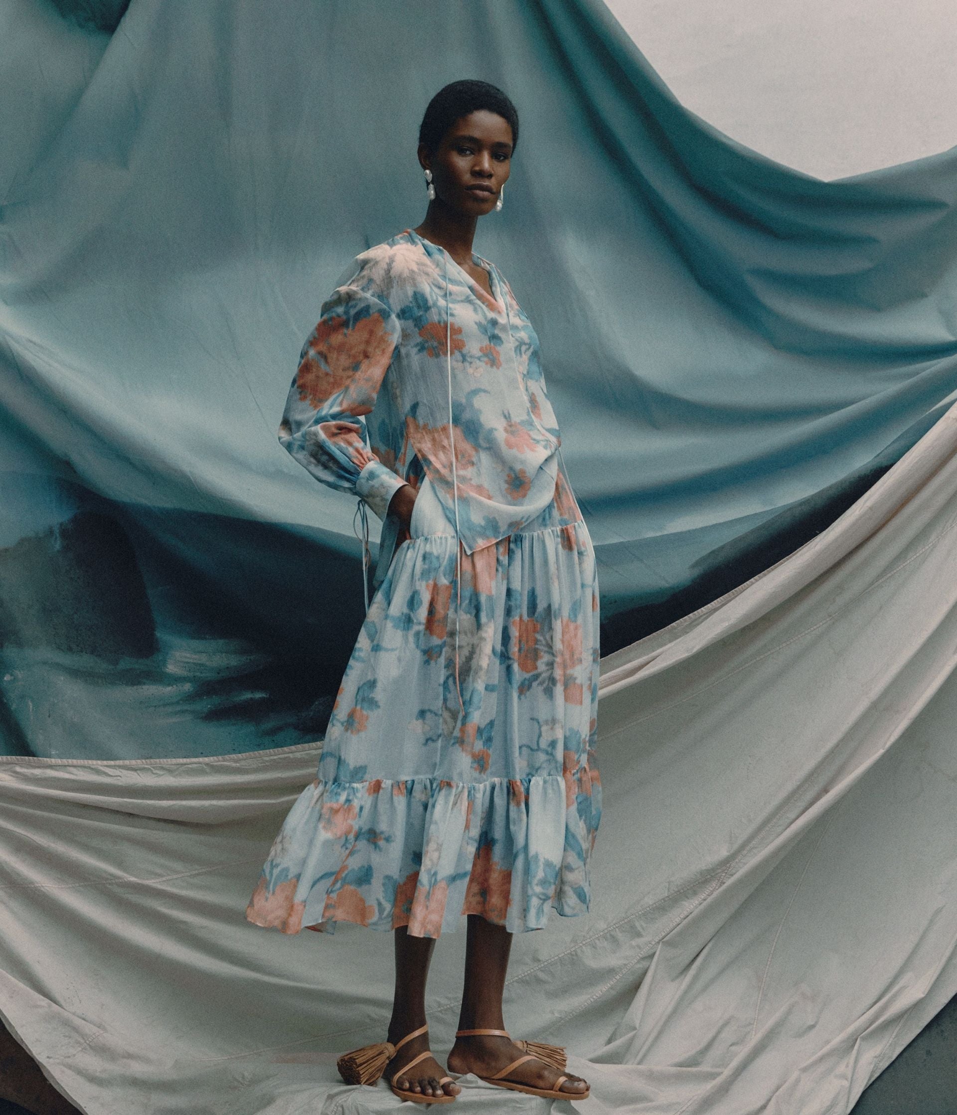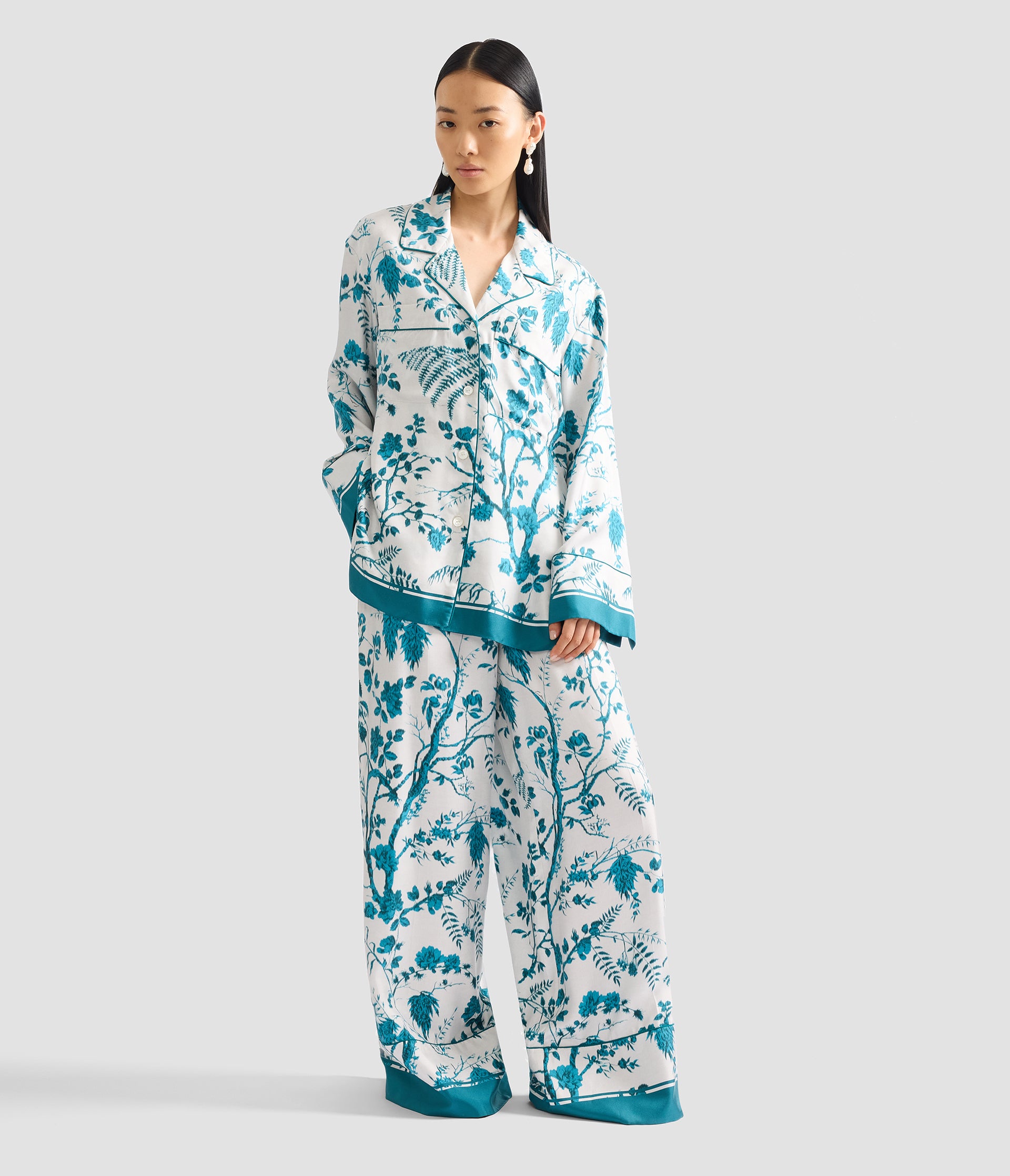 Floral Print Crepe De Chine Long Sleeve Shirt