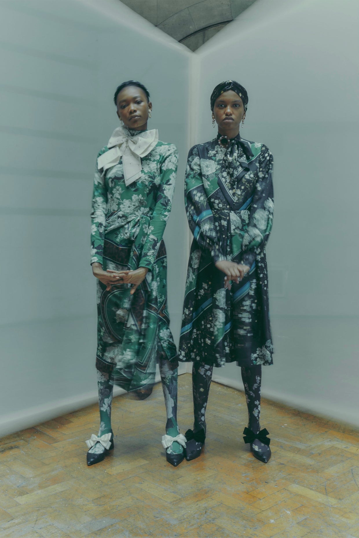 Erdem brings the interplay between these two eras to life across the collection in a series of powerfully evocative portraits, with references that veer from Berthe Morisotto Guy Bourdin.