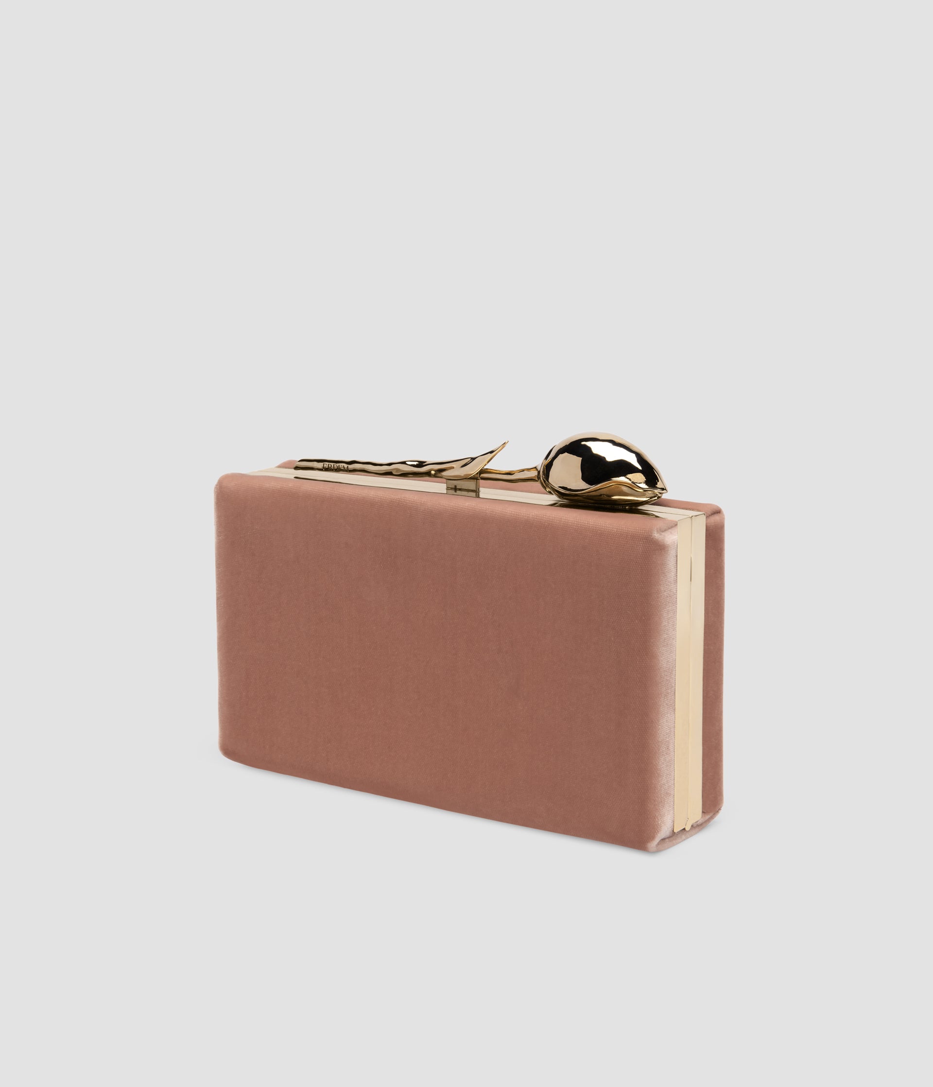The Bloom Minaudière gold-toned flower bud floats elegantly along the top of the bespoke brass frame. It takes seven hours to produce using the lost wax casting method.
