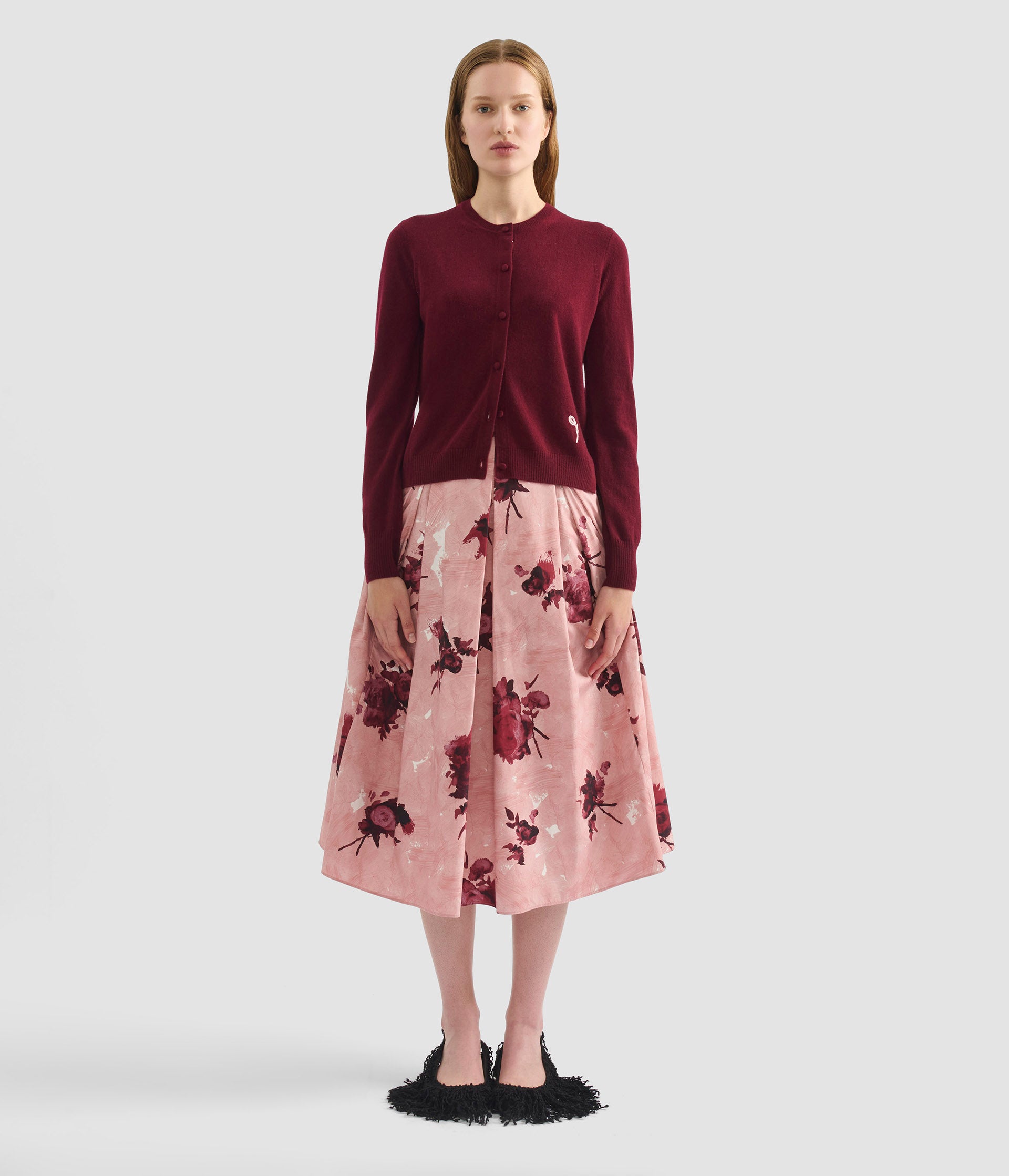 Floral Print Pleated Midi Skirt