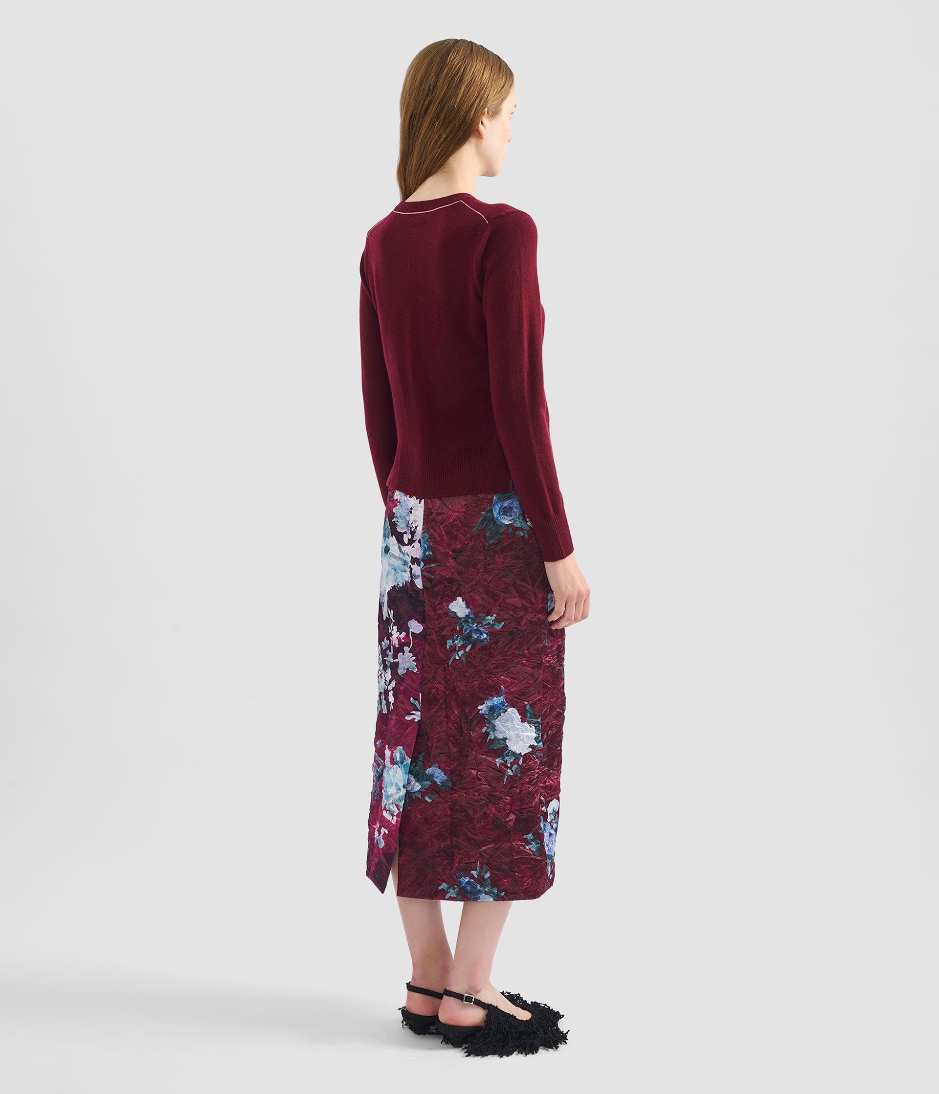 Knitted from lightweight cashmere, this mulberry jumper is accented with a white embroidered flower at the hem.