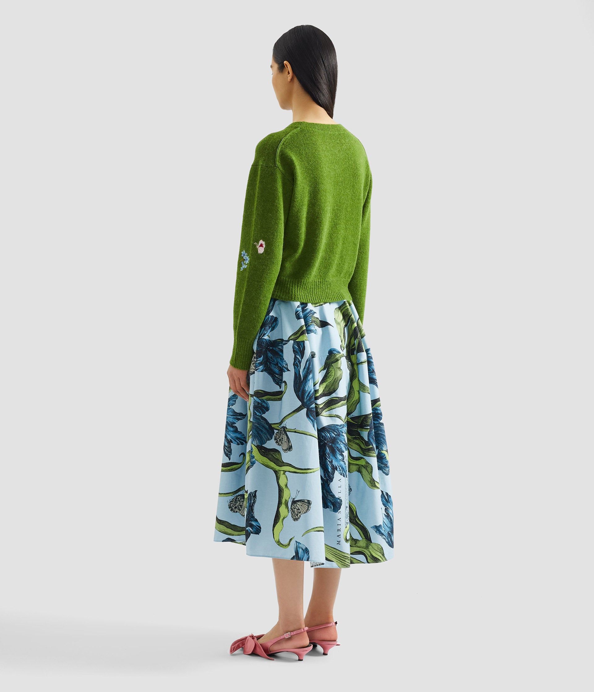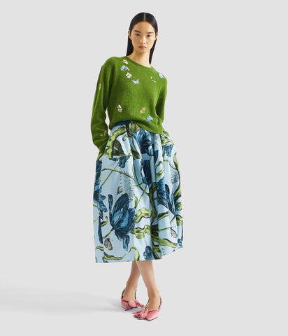 This relaxed-fit jumper is knitted from a textural alpaca and wool blend. Colourful botanical embroidery - inspired by Maria Sibylla Merian - stands out against the apple green hue.