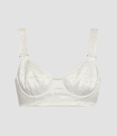 Look 21: Motorcycle jacket in black calfskin with tulip embroidery worn with pencil skirt in black calfskin with tulip embroidery. Worn with ivory satin bra top.