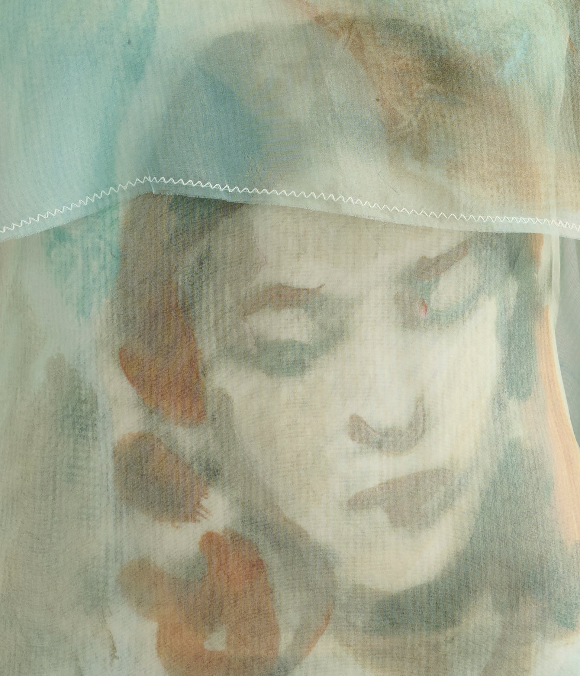 Sheer Italian organza becomes a canvas for Kaye Donachie’s hand-painted artworks.