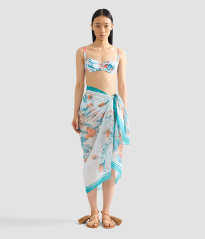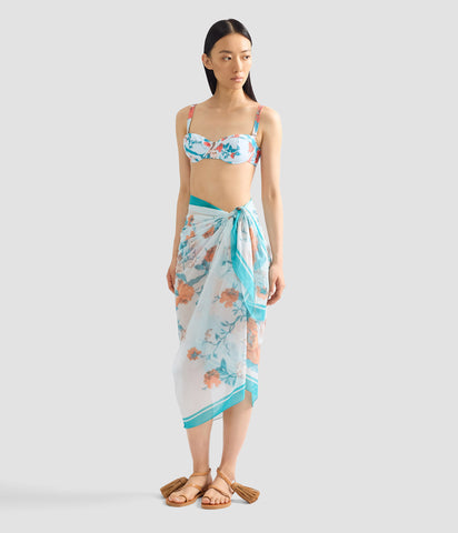 Cut from a lightweight silk and modal blend, this blue pareo is decorated with a trailing poppy print.