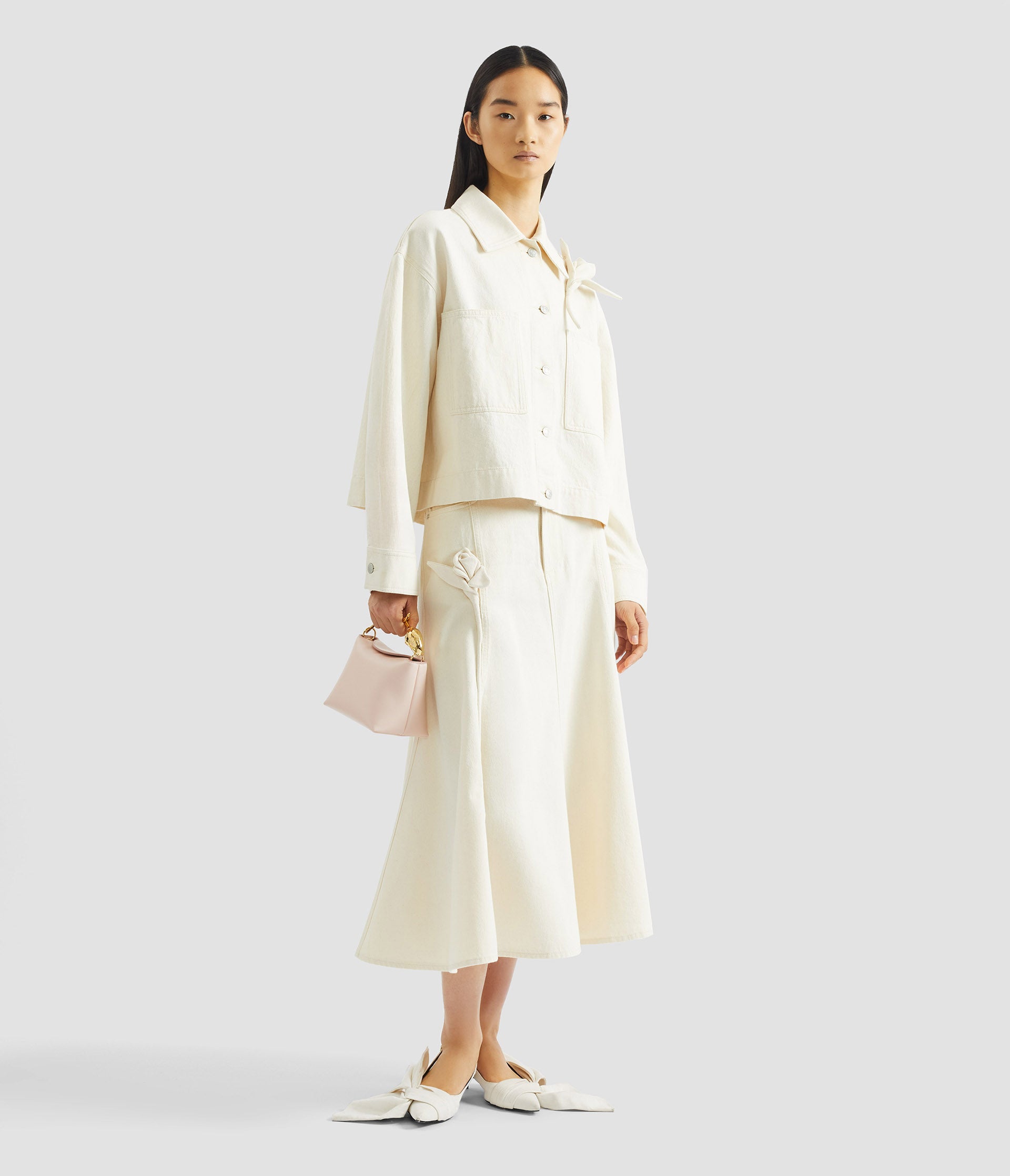 Floral Appliqué Denim Cropped Jacket