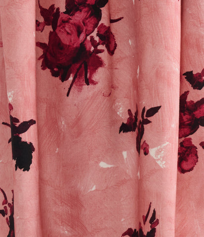 Cut from a lightweight tailoring fabric, this voluminous skirt is printed with a pink paint effect and abstract roses.