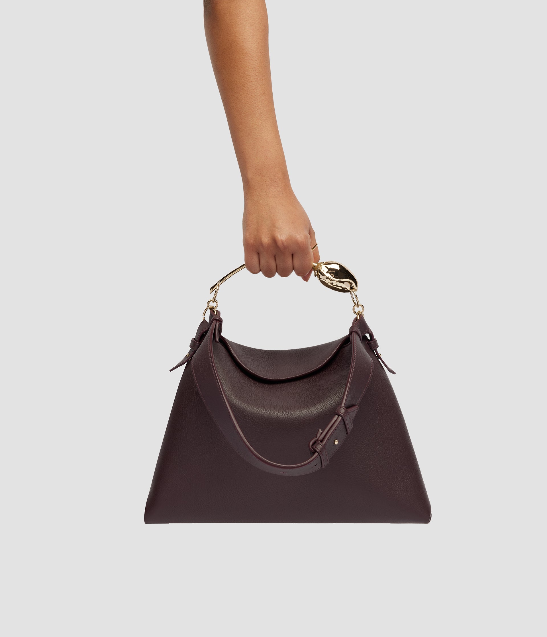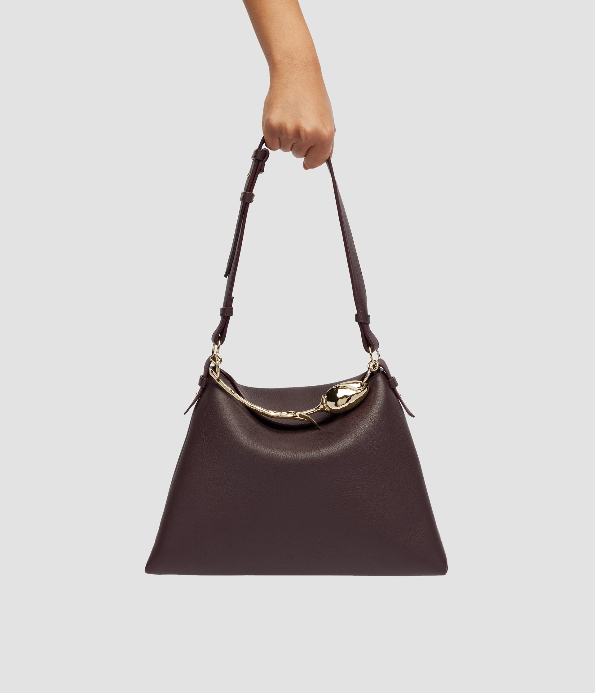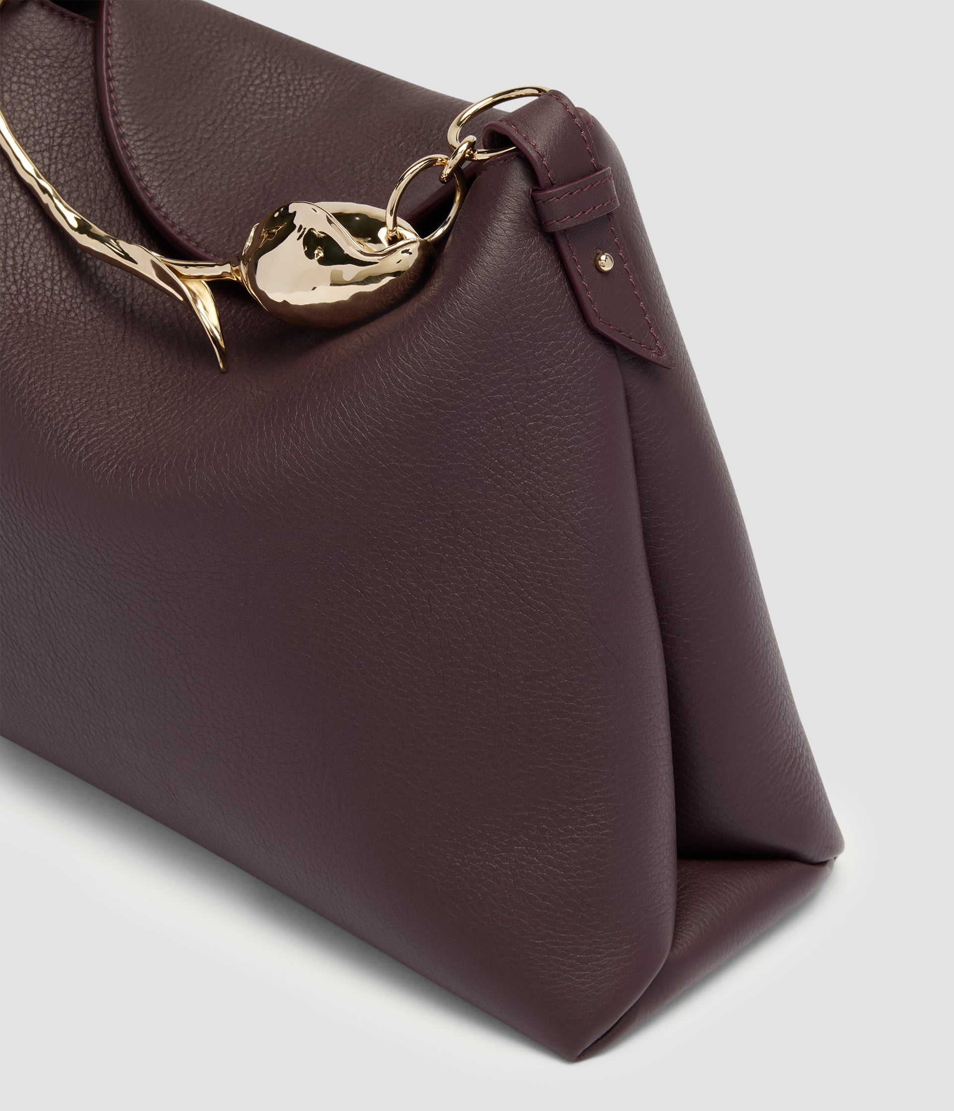 The Bloom Bag's gold-toned flower bud handle takes seven hours to produce using the lost wax casting method. It also features a petal-shaped magnetic top closure.