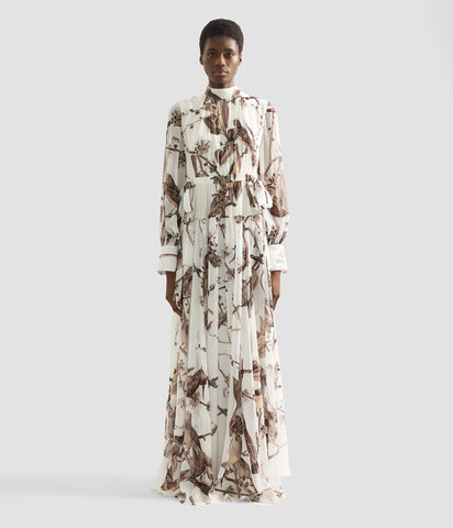 Printed Silk Voile Long Sleeve Gown