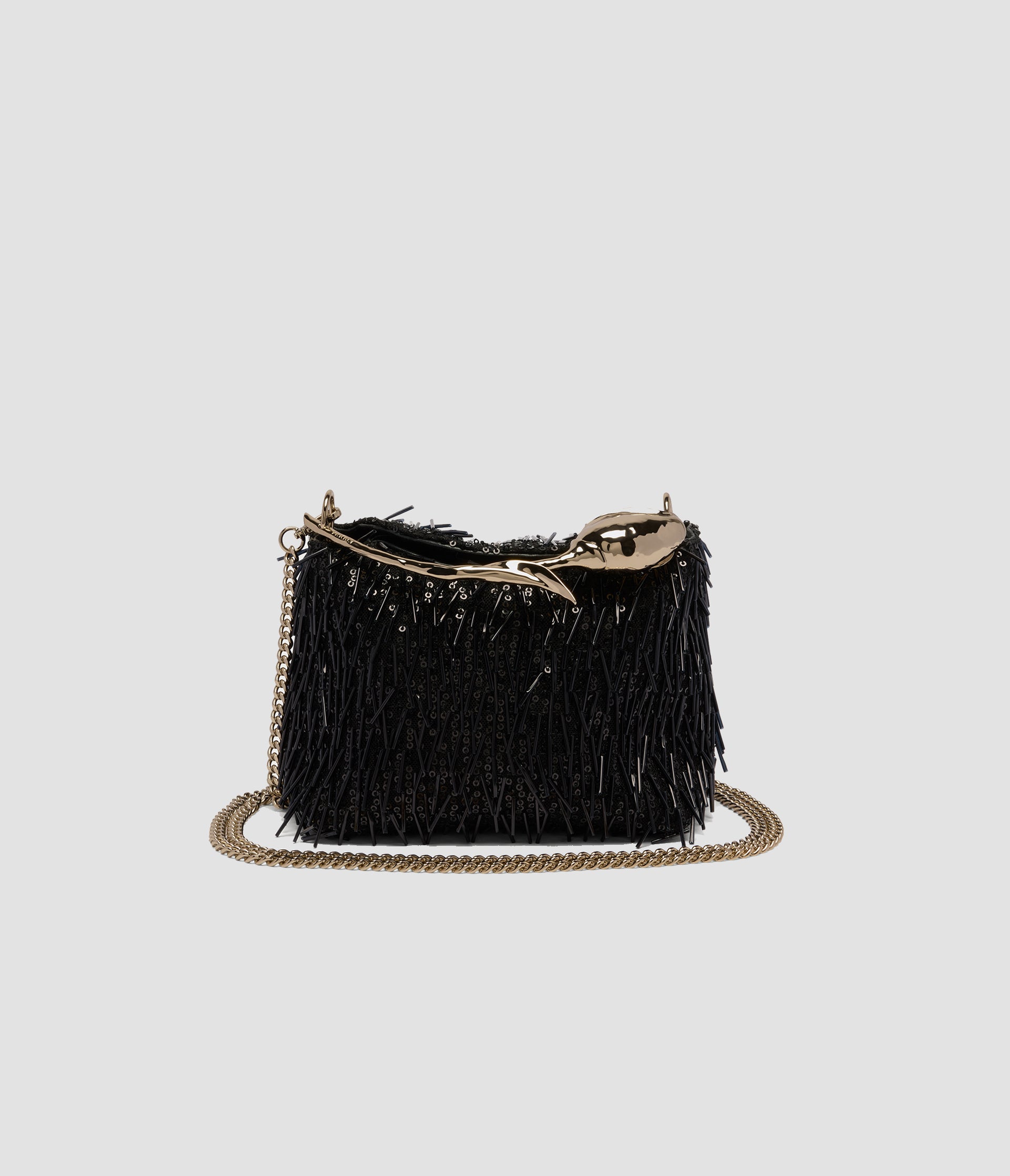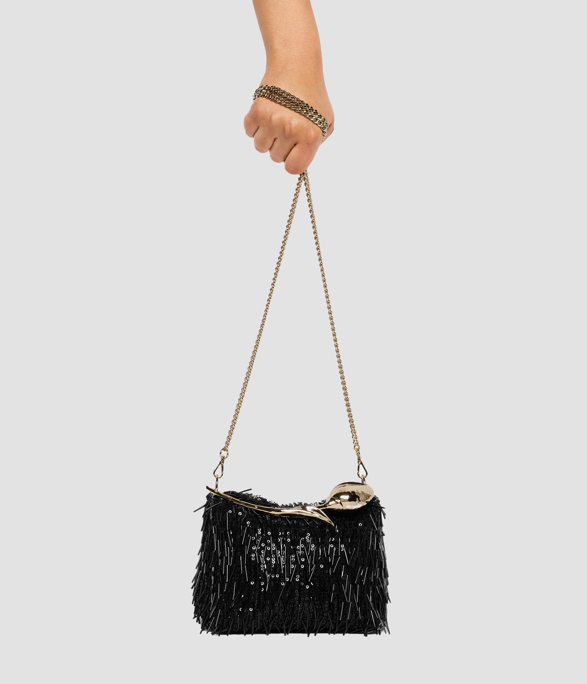 The Bloom Bag's gold-toned flower bud handle takes seven hours to produce using the lost wax casting method. It also features a petal-shaped magnetic top closure.