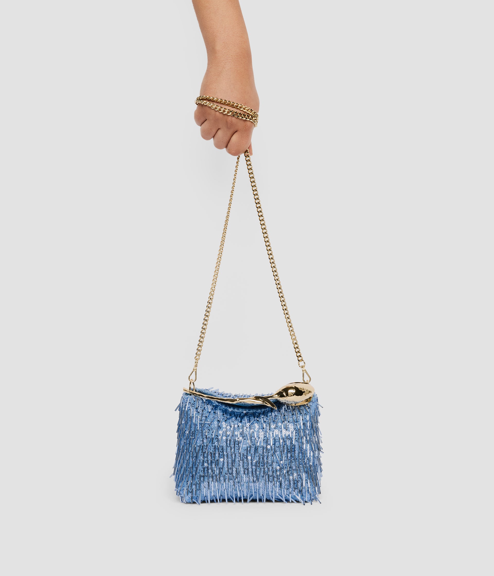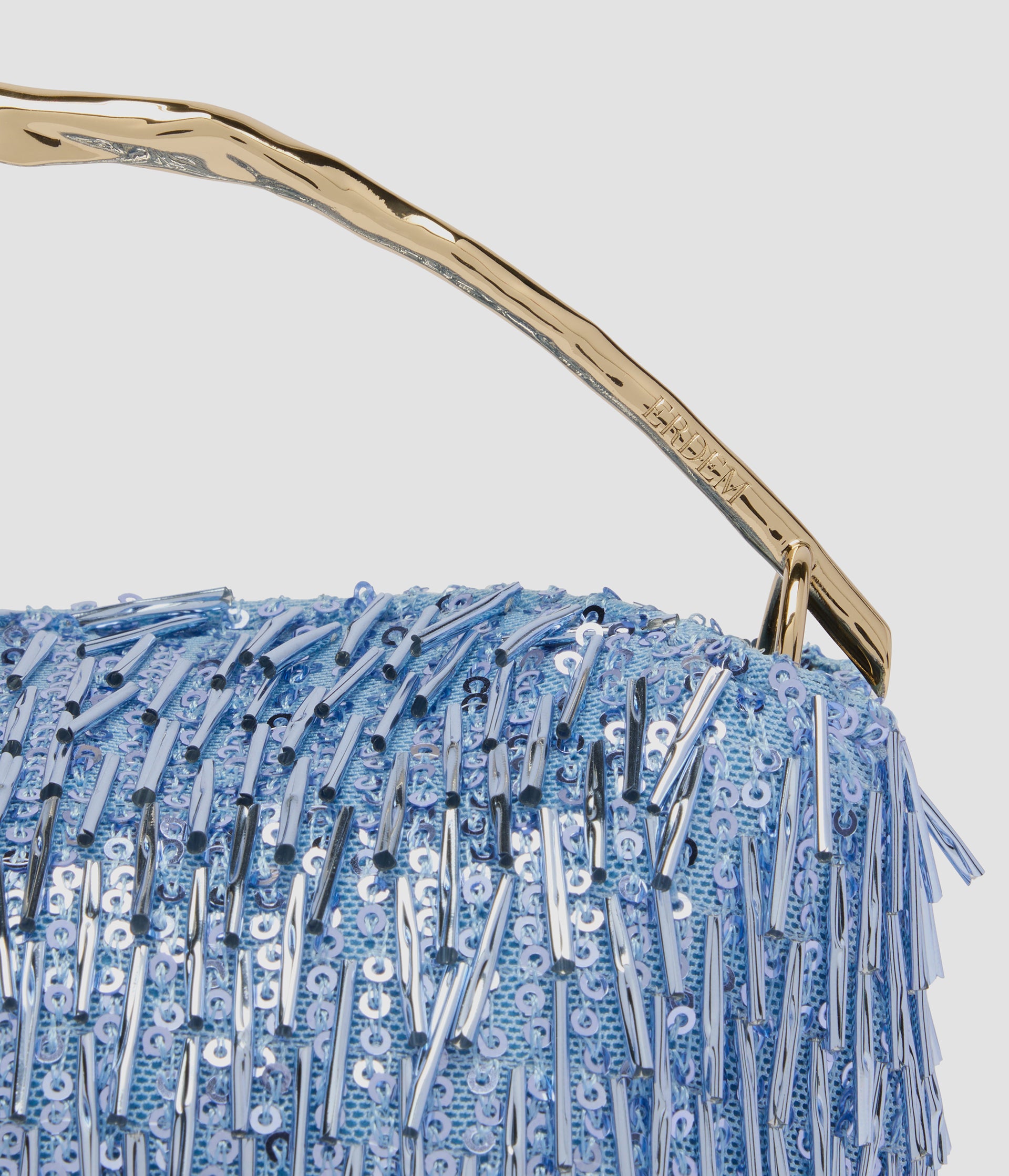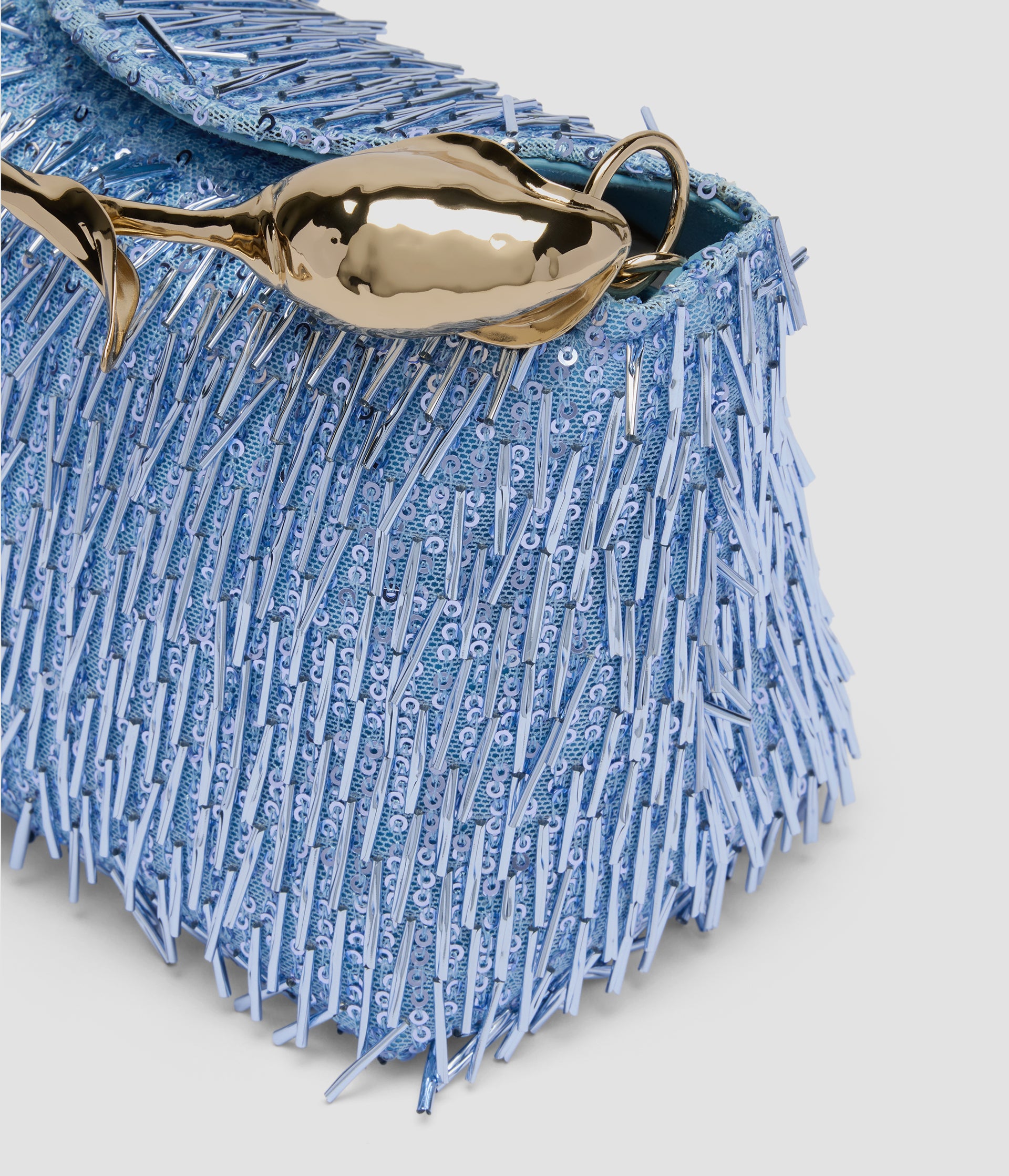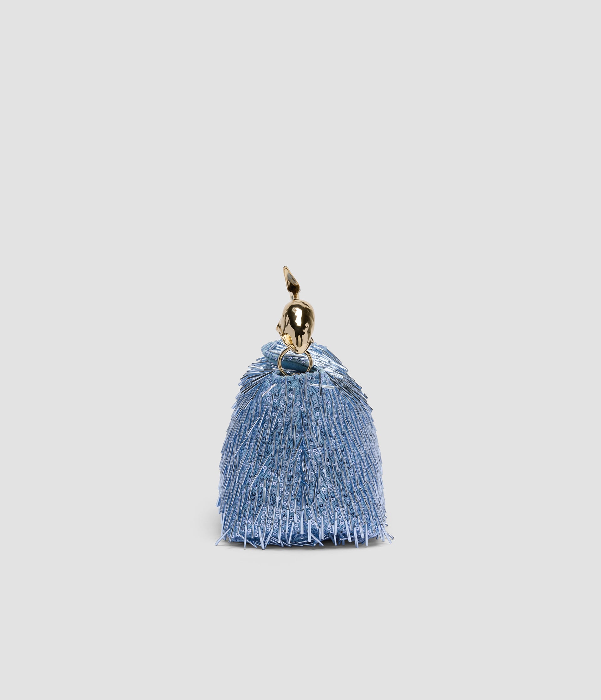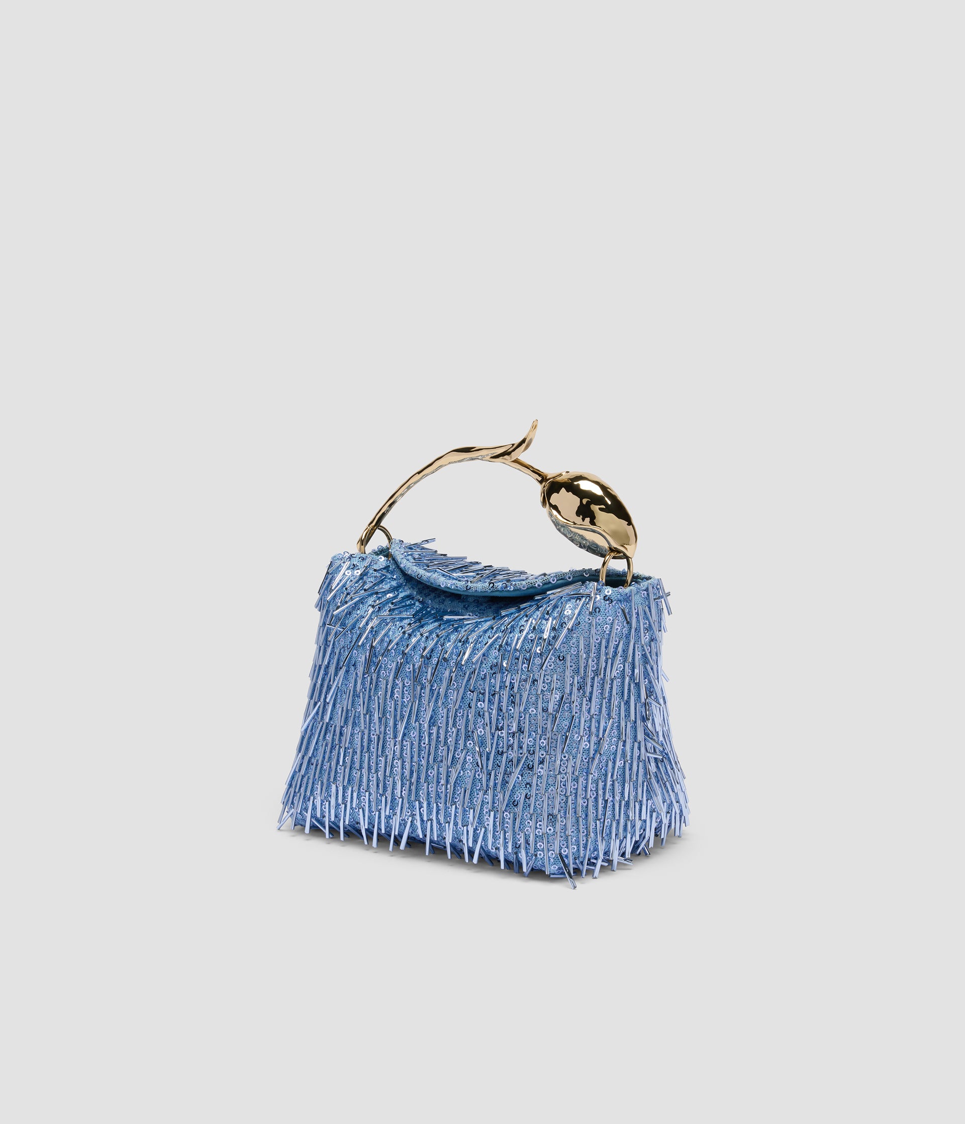 The Bloom Bag's gold-toned flower bud handle takes seven hours to produce using the lost wax casting method. It also features a petal-shaped magnetic top closure.