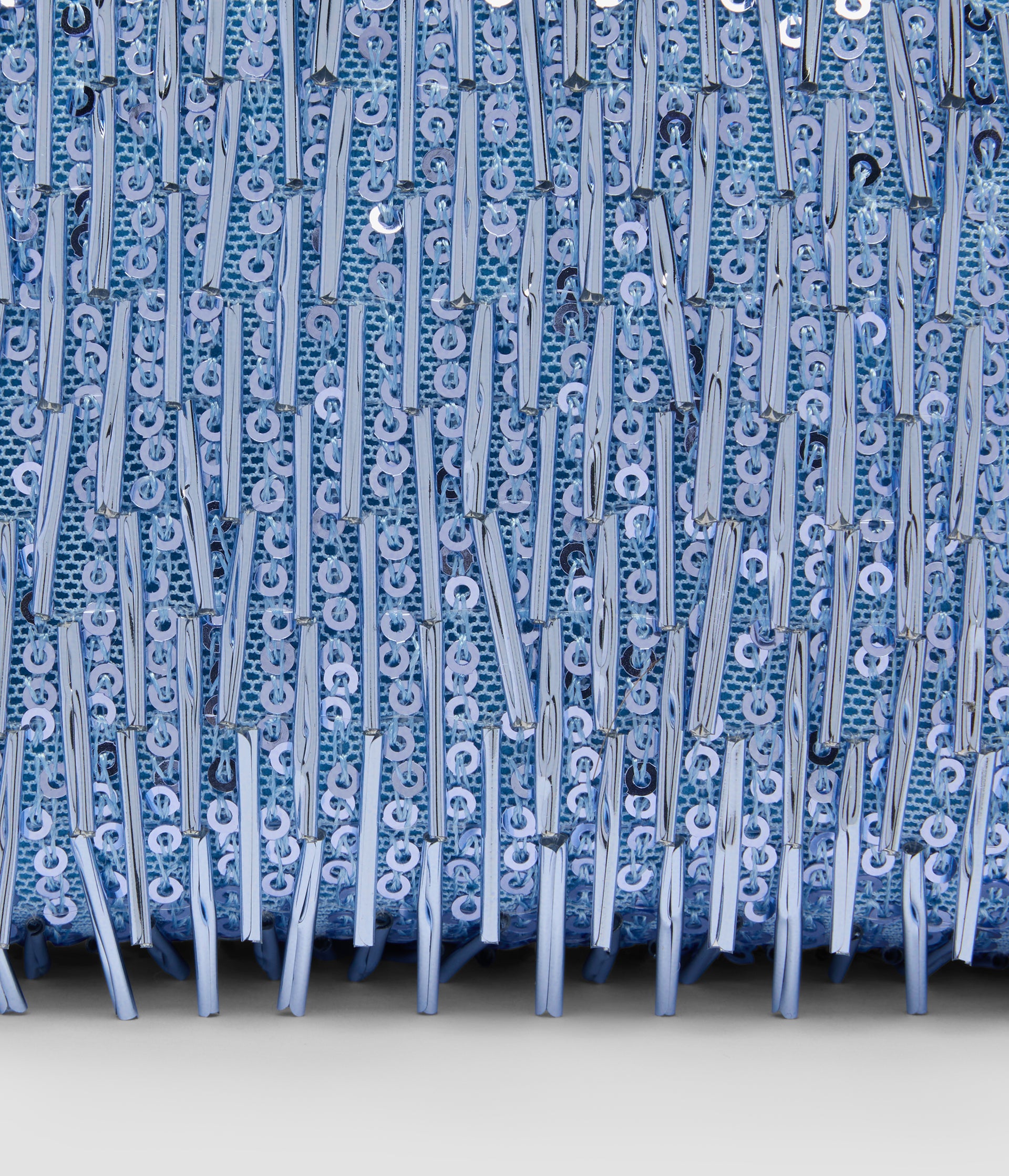95% Polyester 5% Spandex. Lining: 100% Kid Suede. Handle: 100% Brass.