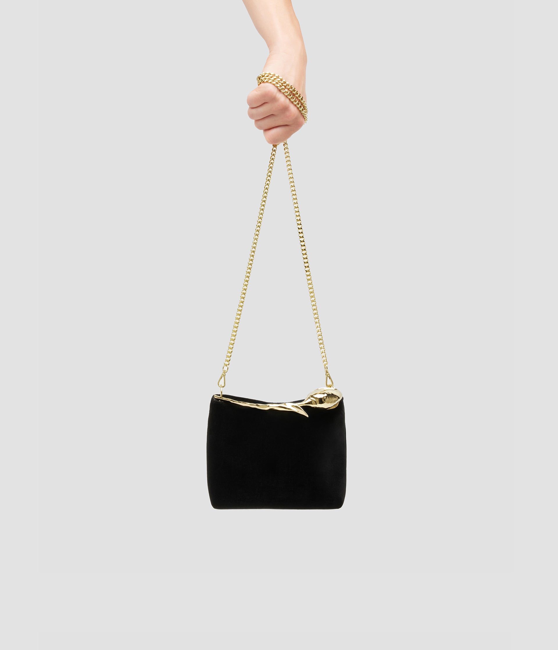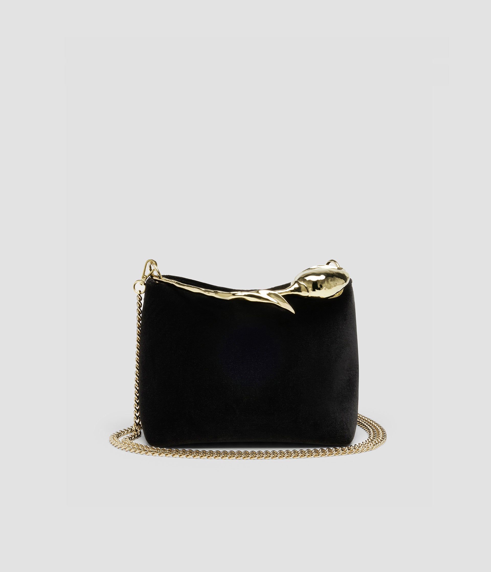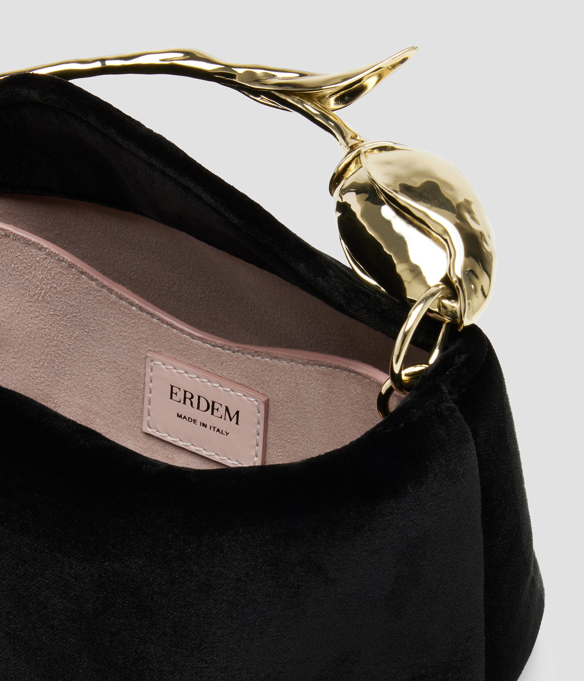 The Bloom Bag's gold-toned flower bud handle takes seven hours to produce using the lost wax casting method. It also features a petal-shaped magnetic top closure.