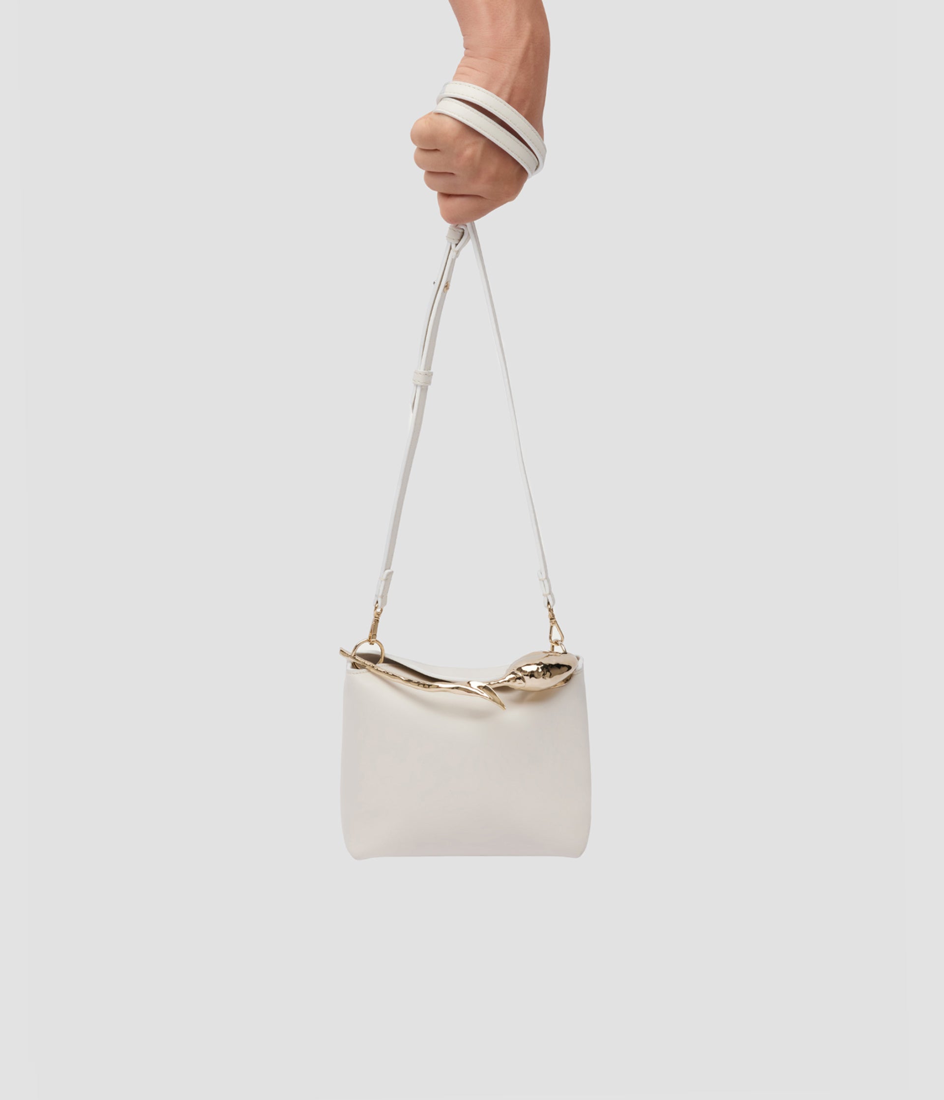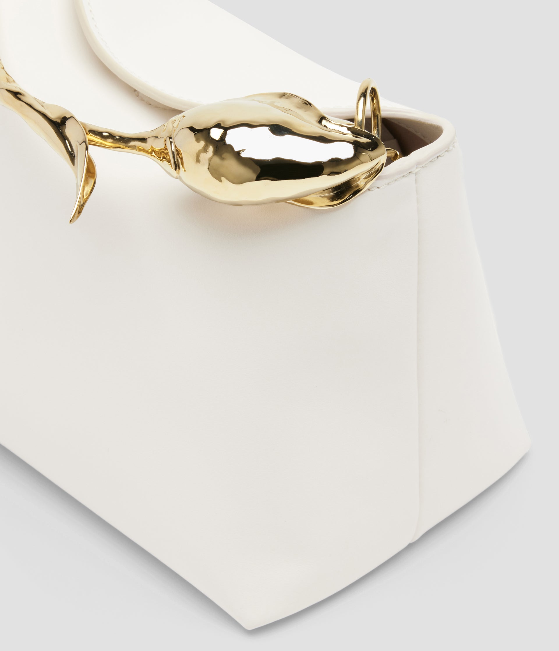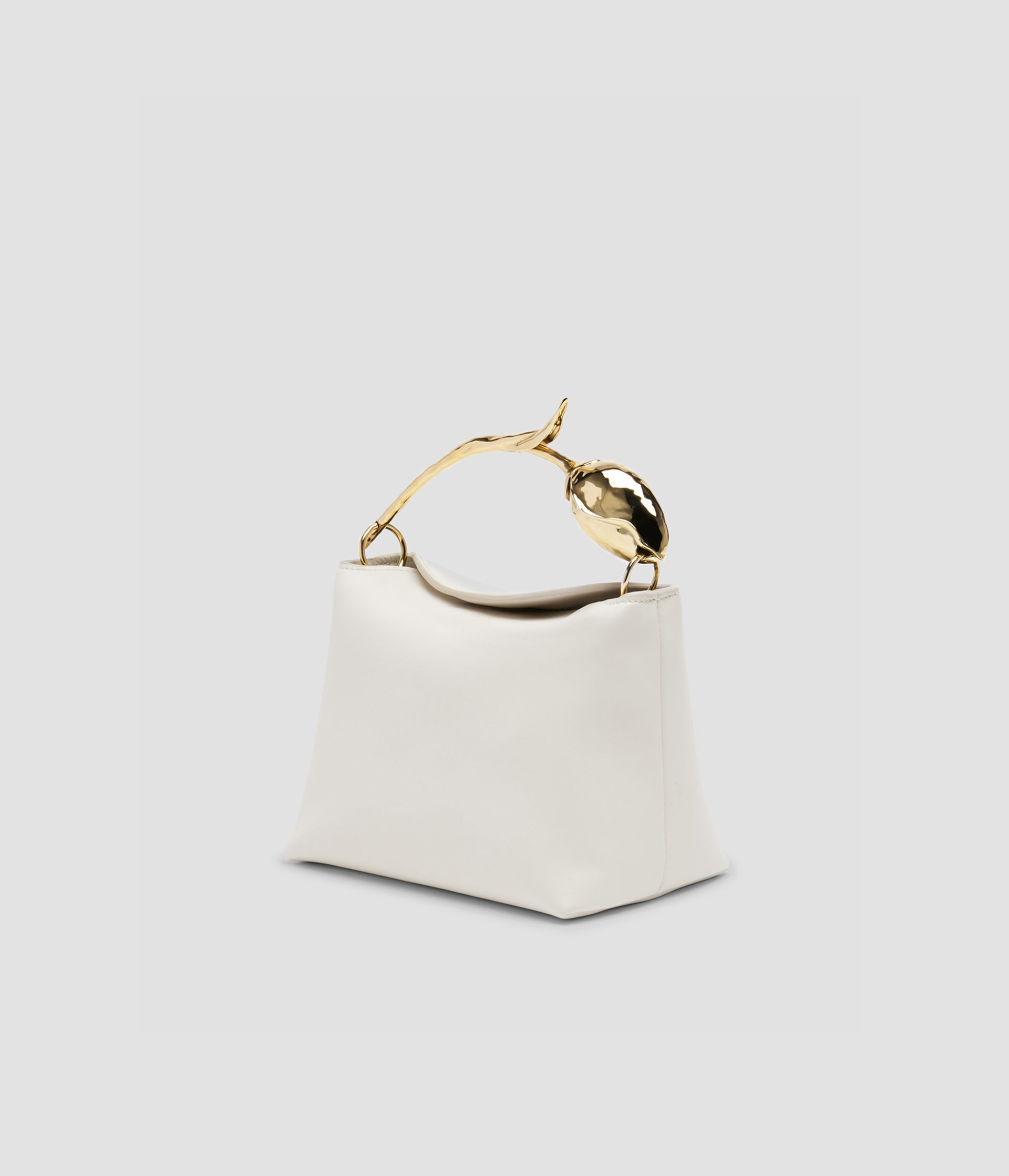 The Bloom Bag's gold-toned flower bud handle takes seven hours to produce using the lost wax casting method. It also features a petal-shaped magnetic top closure.