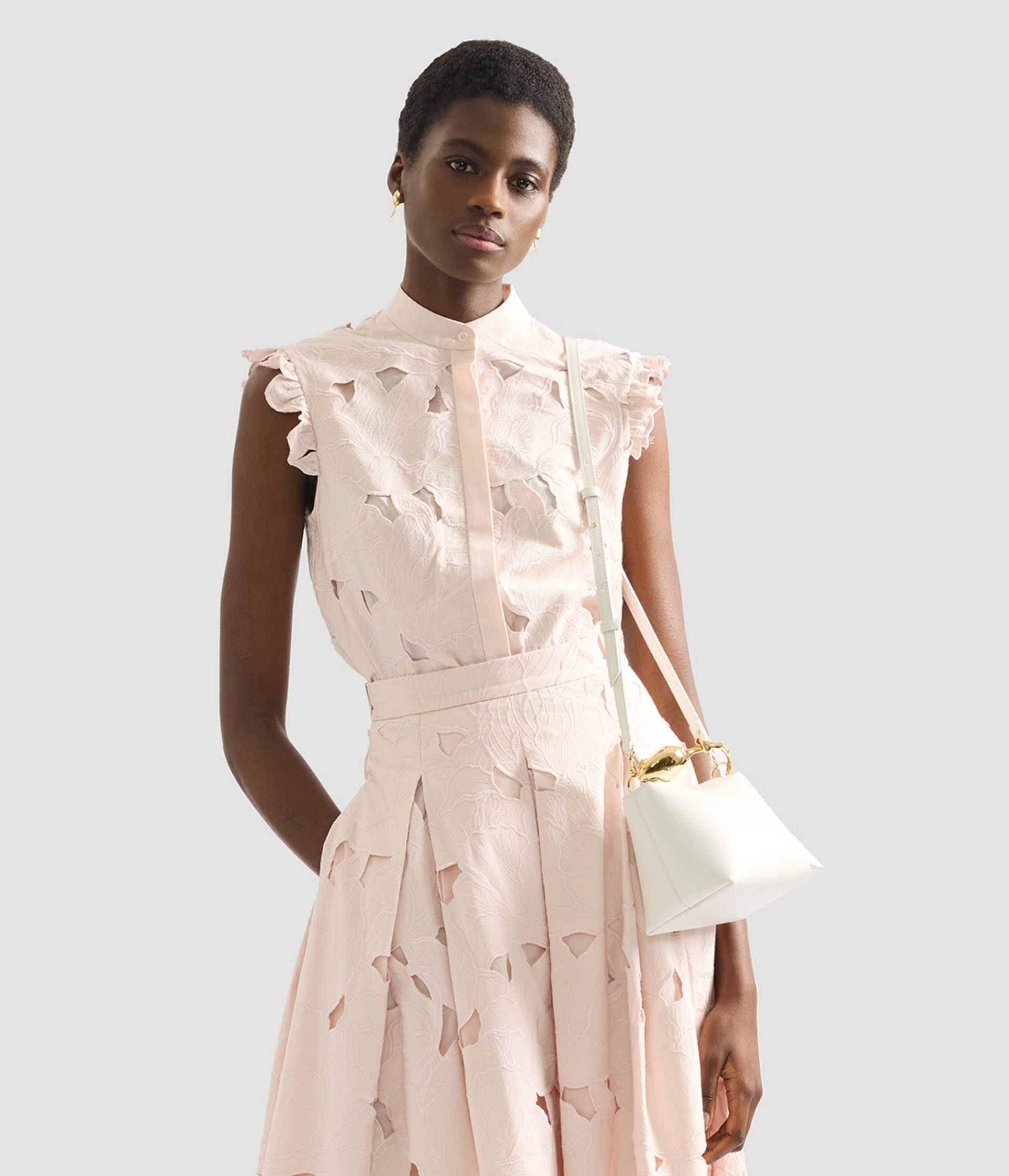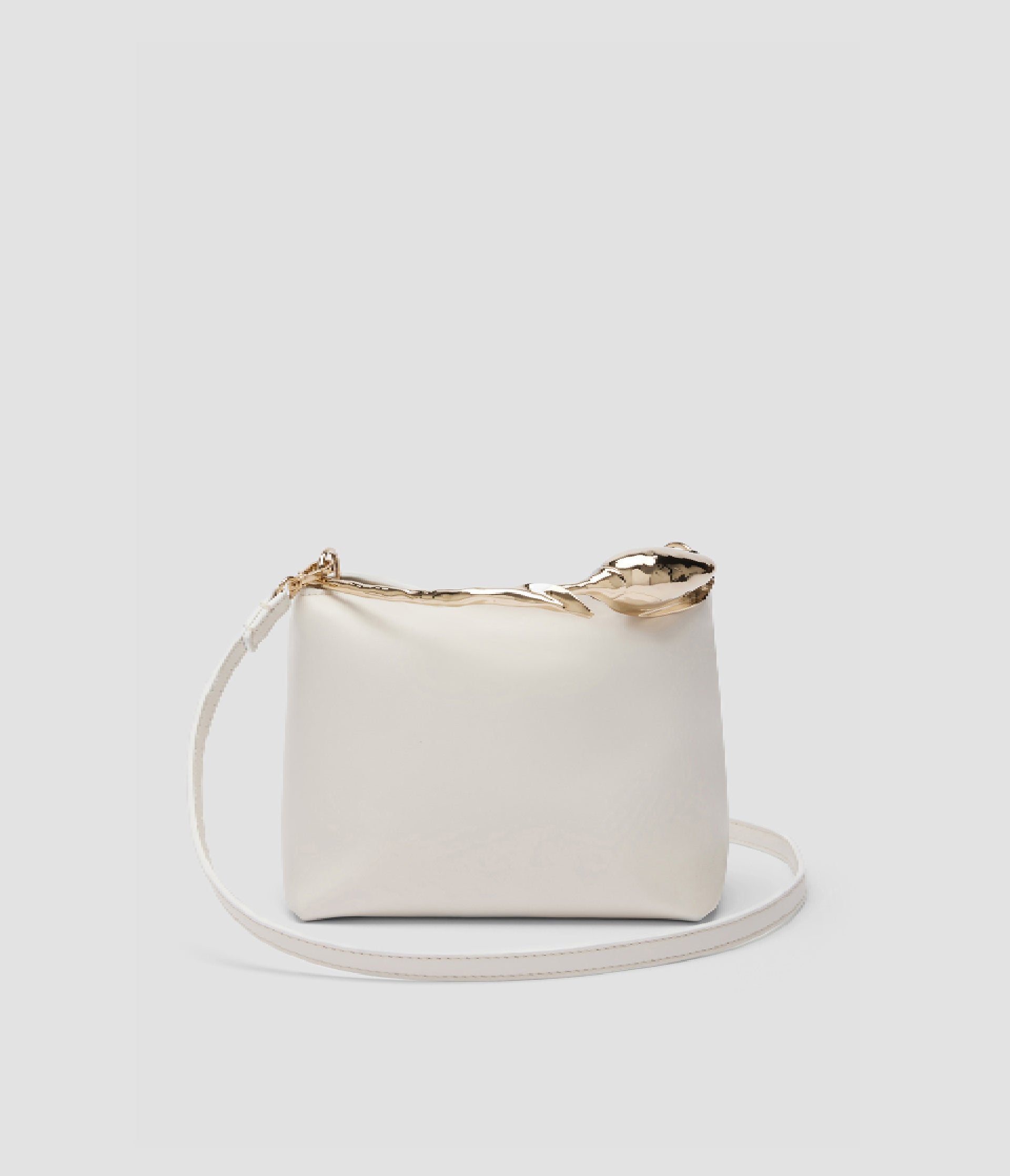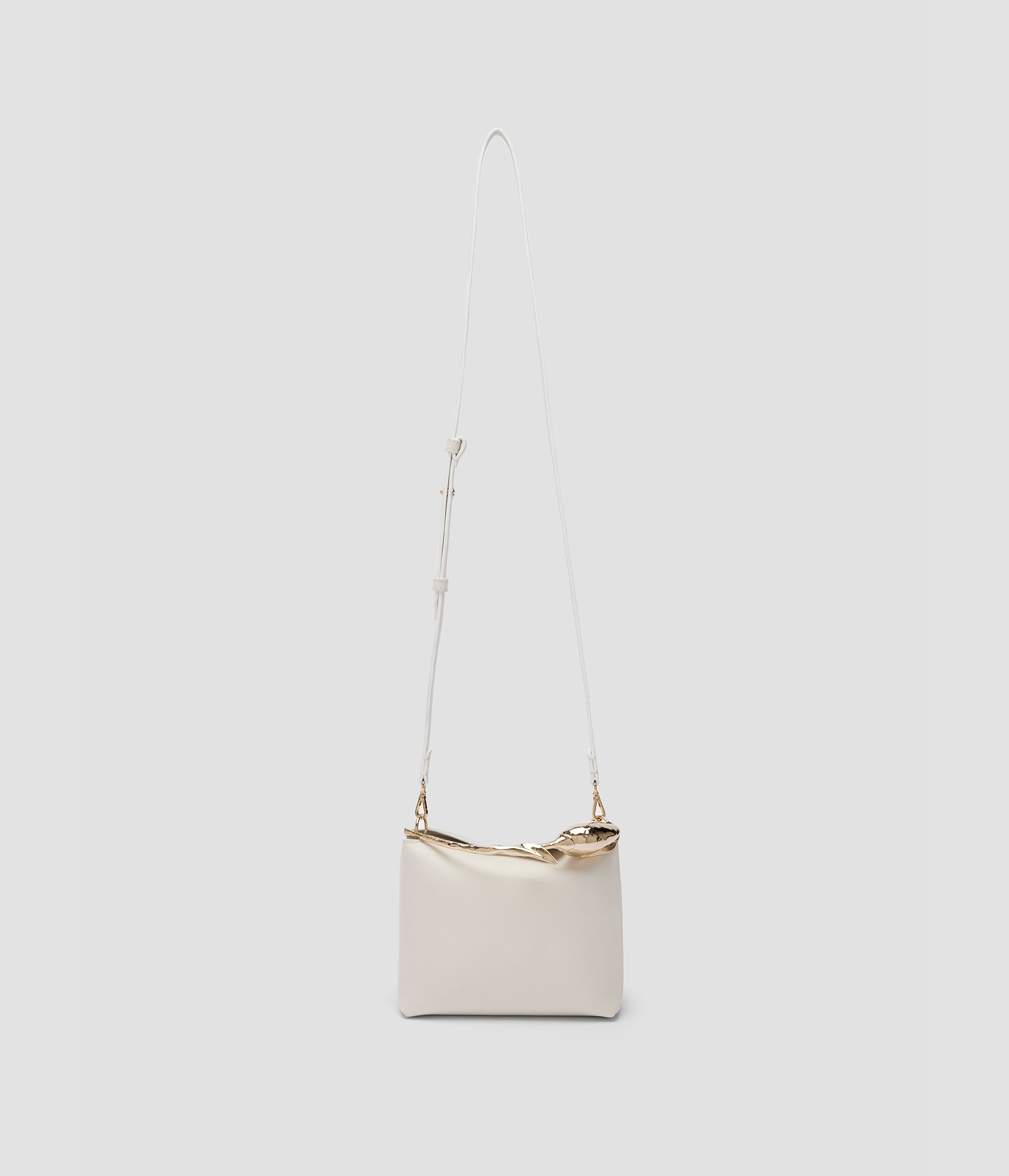 The Bloom Bag's gold-toned flower bud handle takes seven hours to produce using the lost wax casting method. It also features a petal-shaped magnetic top closure.