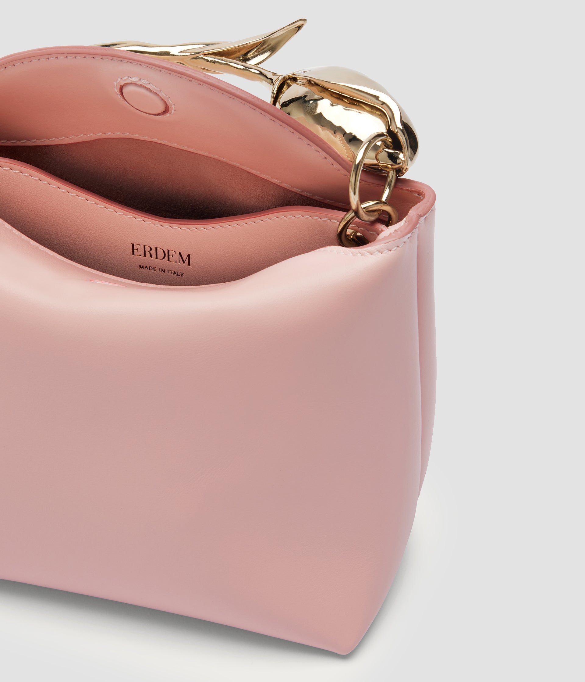 The Bloom Bag's gold-toned flower bud handle takes seven hours to produce using the lost wax casting method. It also features a petal-shaped magnetic top closure.