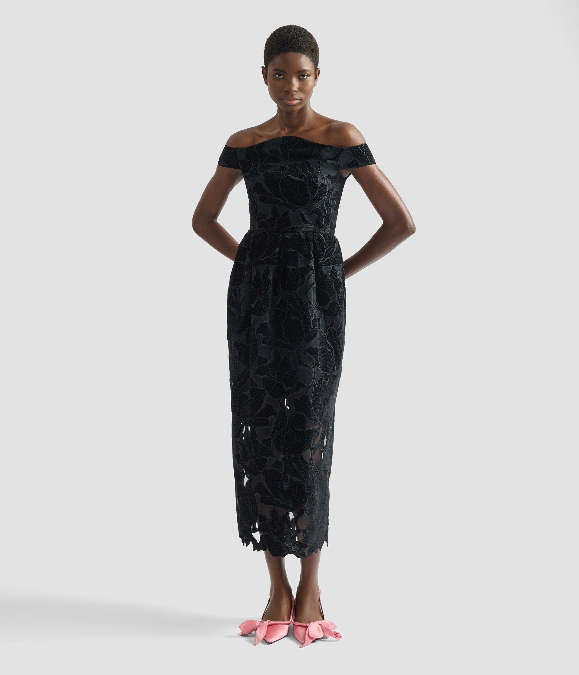 Floral Cutwork Off-The-Shoulder Midi Dress
