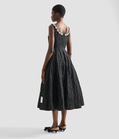 Embroidered Cloque Jacquard Sleeveless Midi Dress
