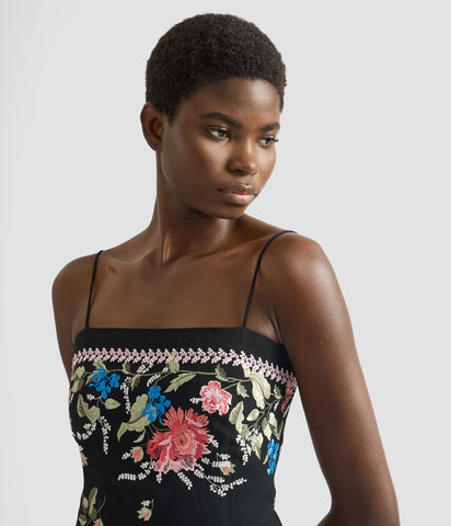 Embroidered Grain De Poudre Sleeveless Midi Dress