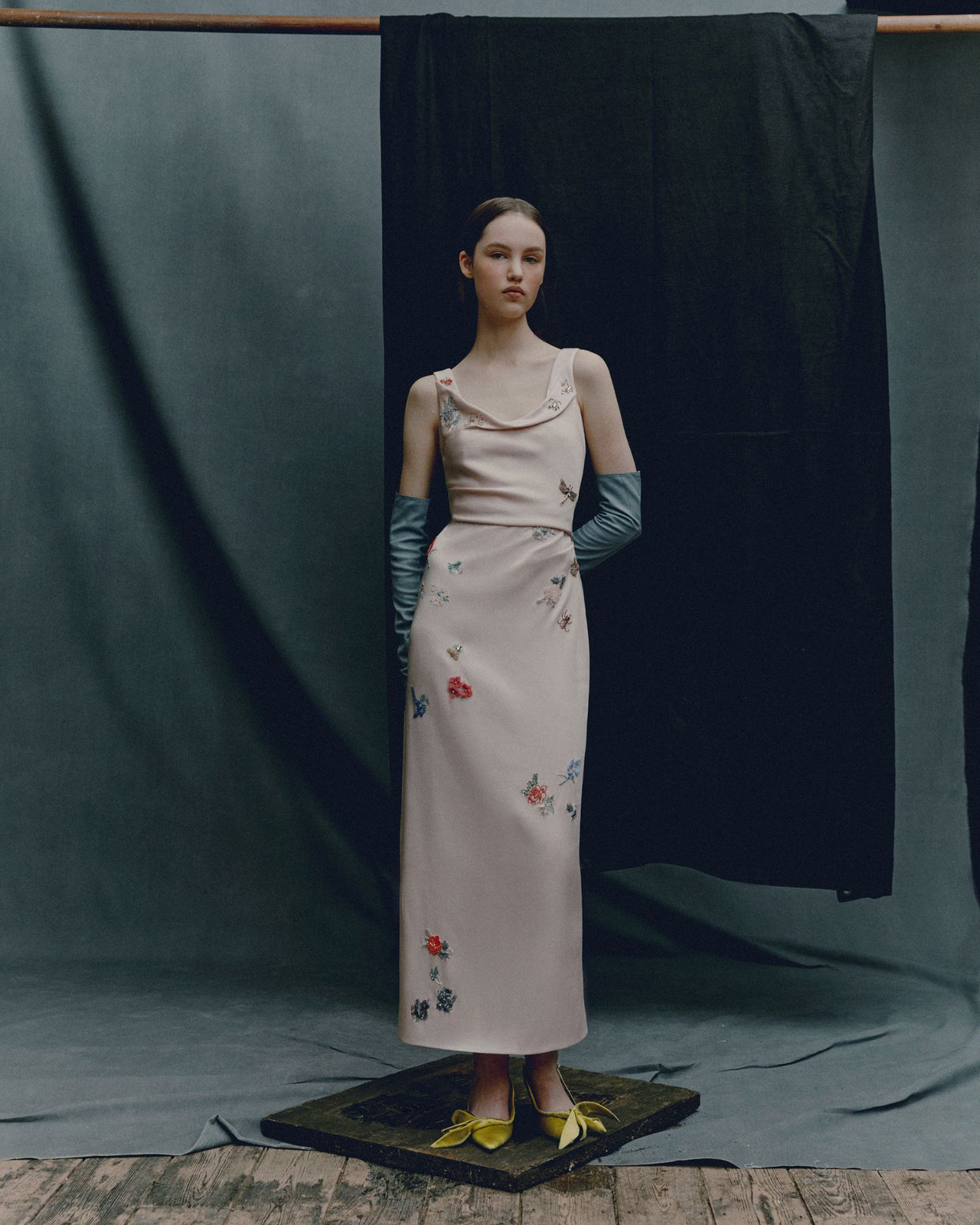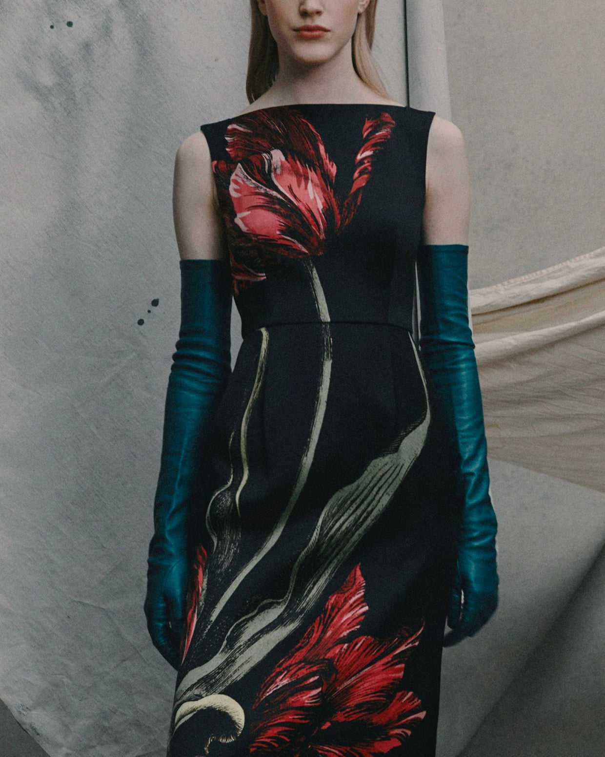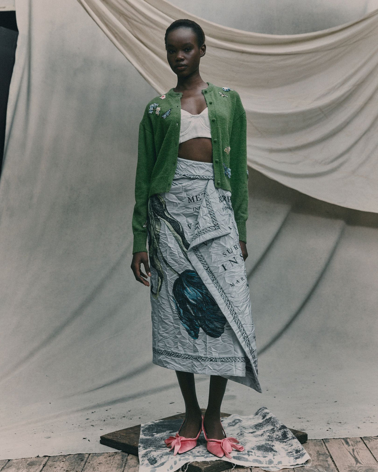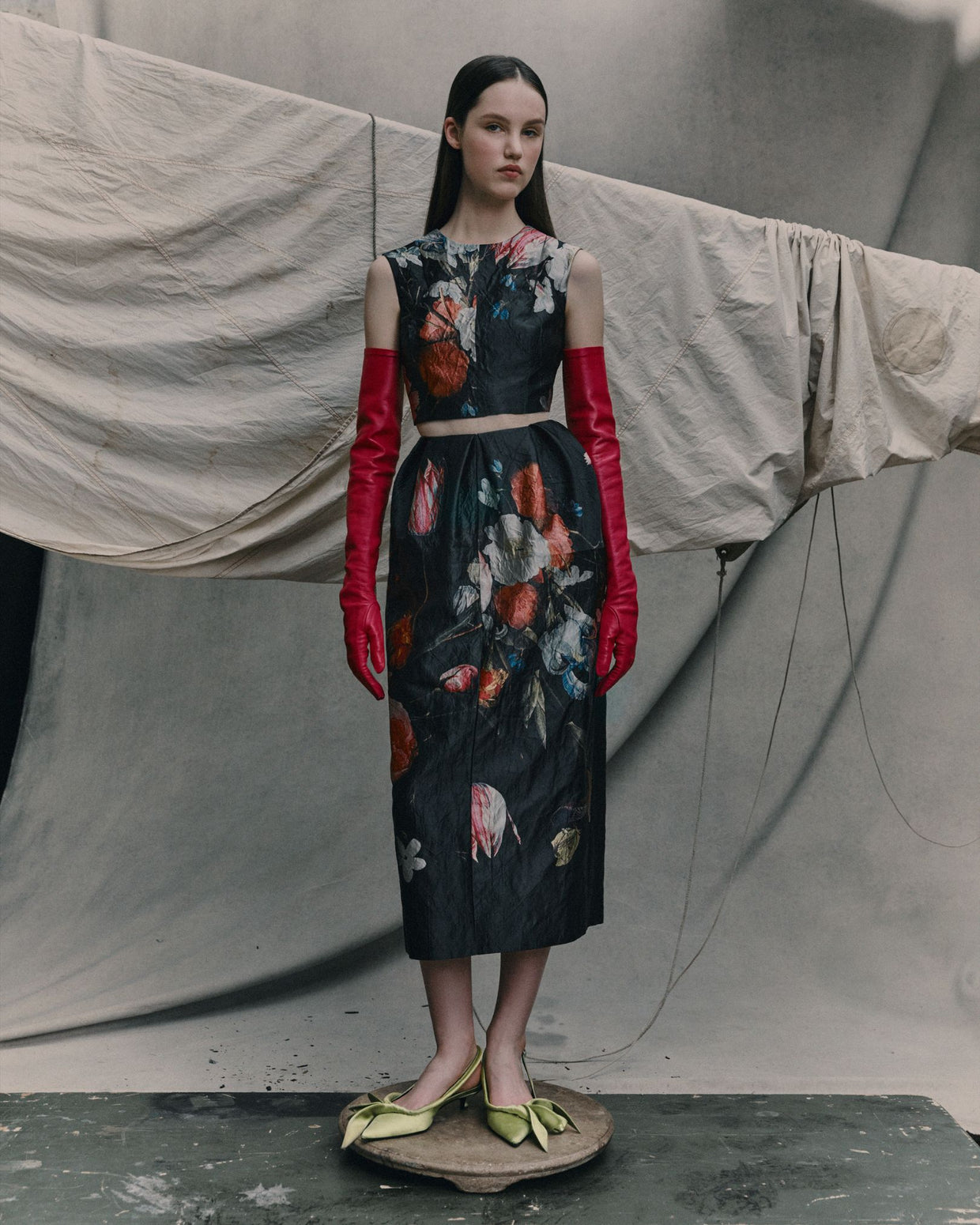 For Pre Spring 2026, Erdem has delved into the pioneering work of Maria Sibylla Merian, the 17th Century German entomologist and botanical illustrator. She published her first book of botanical illustrations in 1675 and in 1705 was the first person to discover the lifecycle and metamorphosis of the butterfly. Based in Amsterdam, Merian was also a devout Calvinist, and it is this tension between her fearful religious doctrine, her scientific rationale and her unbridled passion for nature that Erdem explores here.