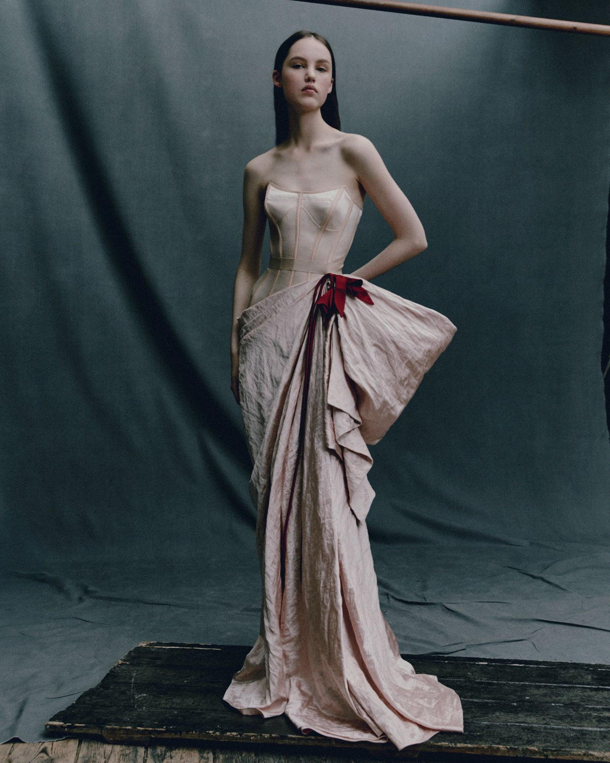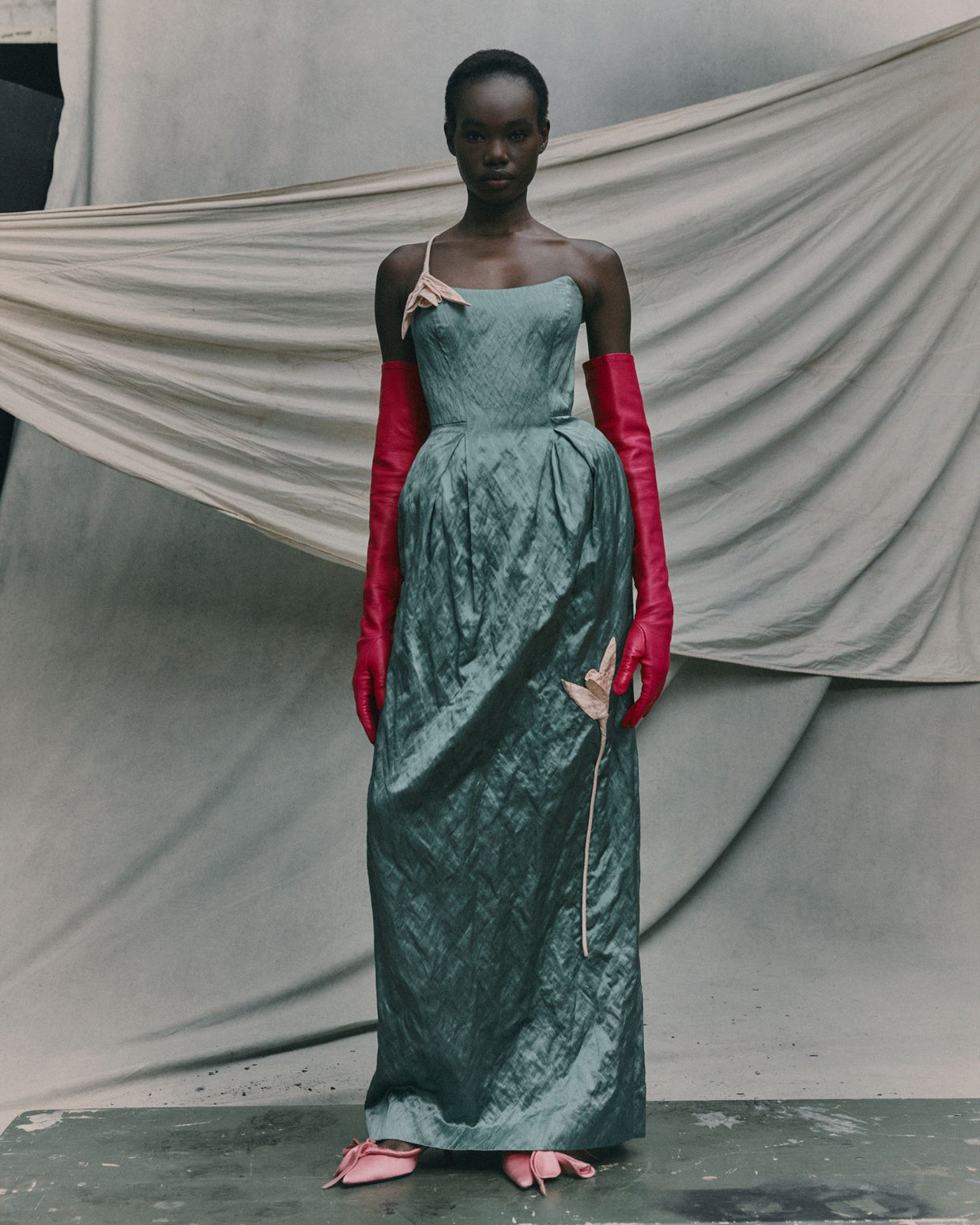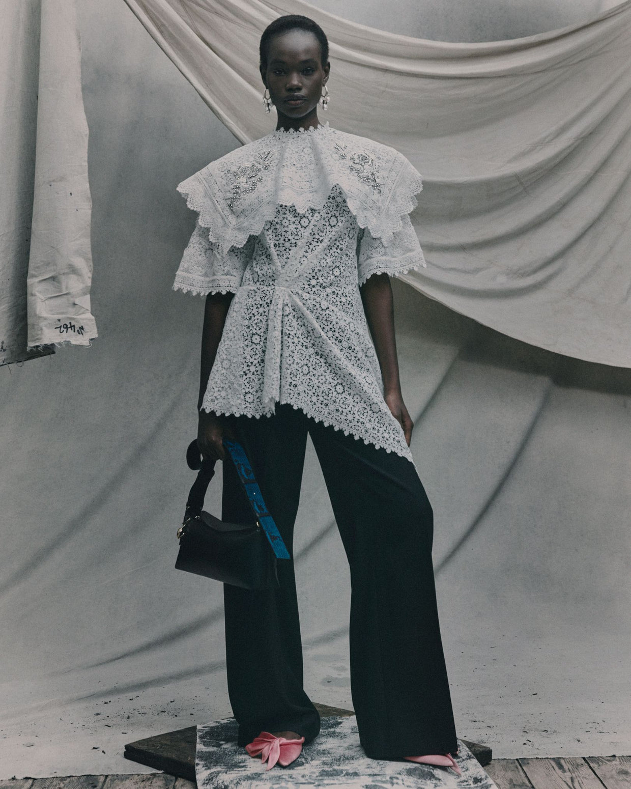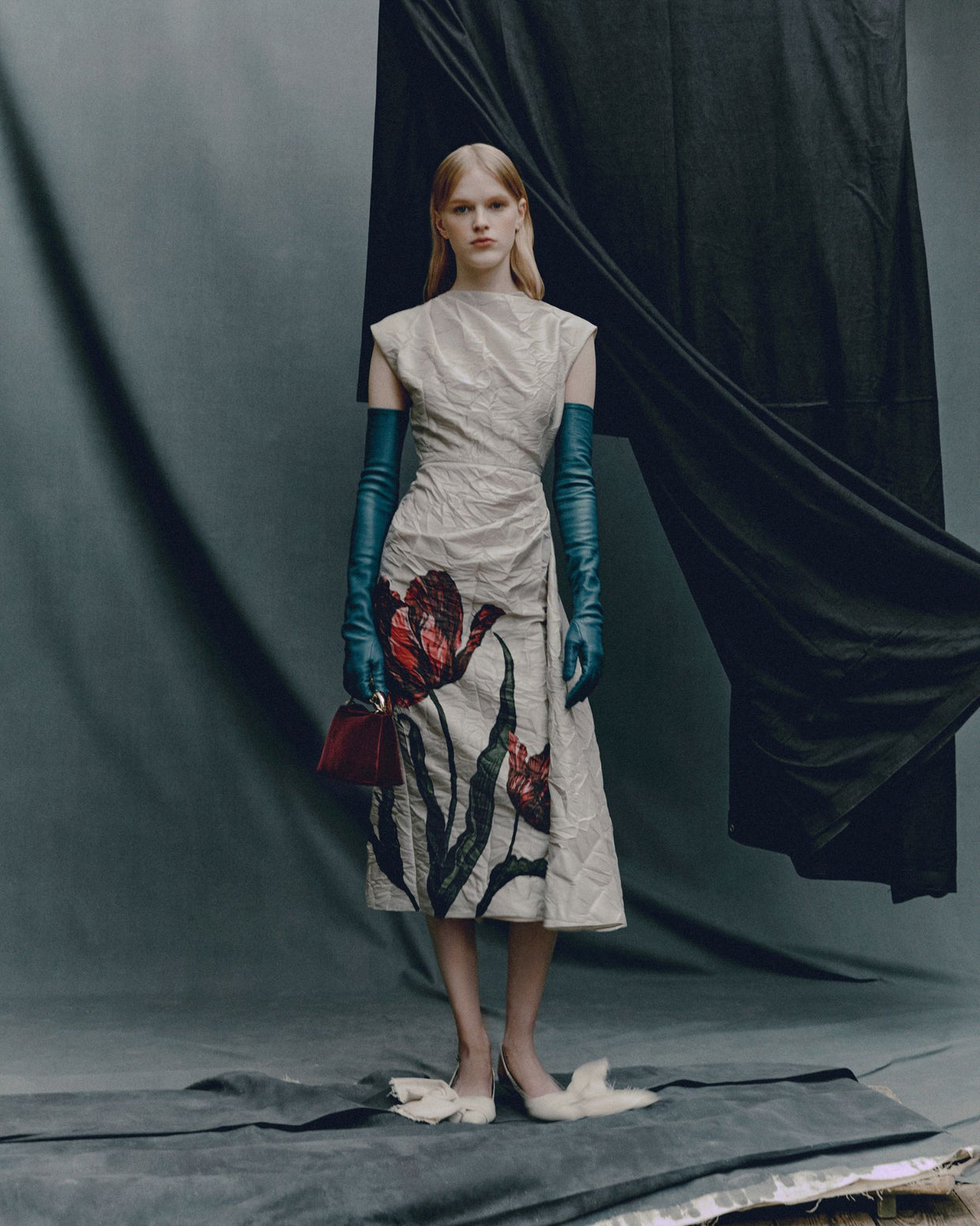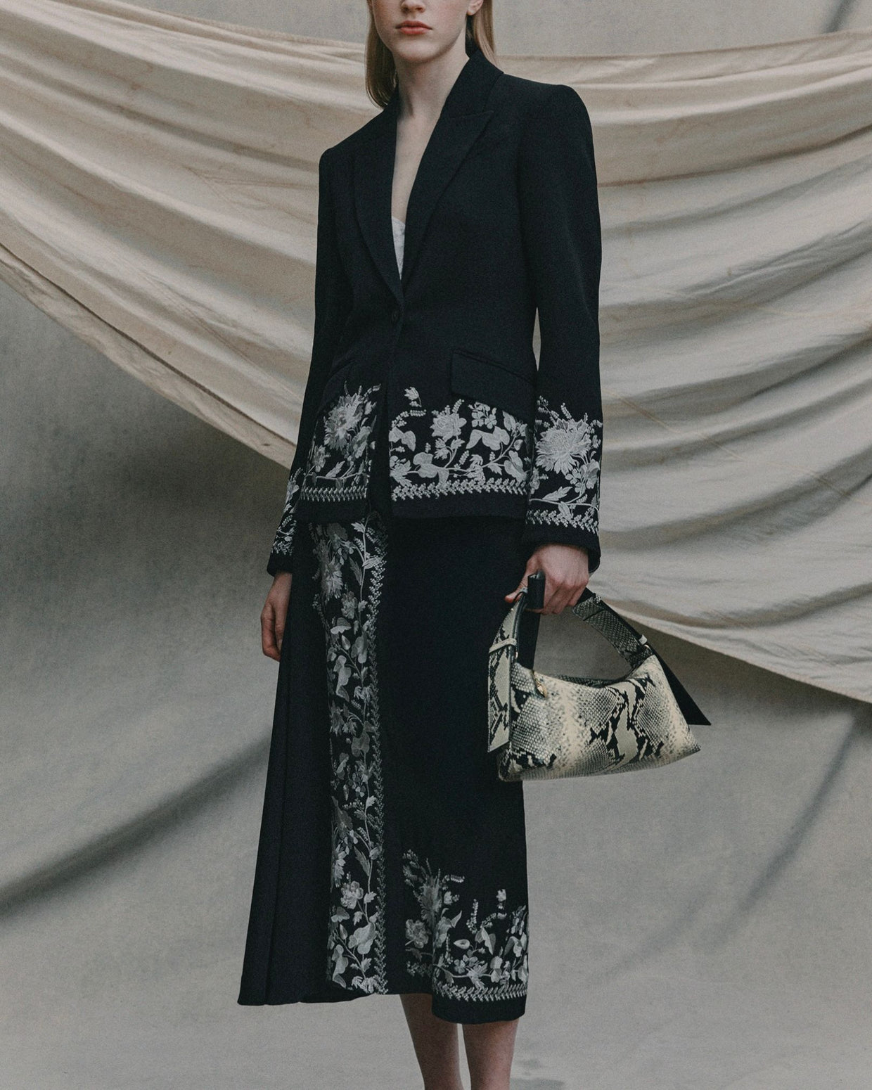 For Pre Spring 2026, Erdem has delved into the pioneering work of Maria Sibylla Merian, the 17th Century German entomologist and botanical illustrator. She published her first book of botanical illustrations in 1675 and in 1705 was the first person to discover the lifecycle and metamorphosis of the butterfly. Based in Amsterdam, Merian was also a devout Calvinist, and it is this tension between her fearful religious doctrine, her scientific rationale and her unbridled passion for nature that Erdem explores here.