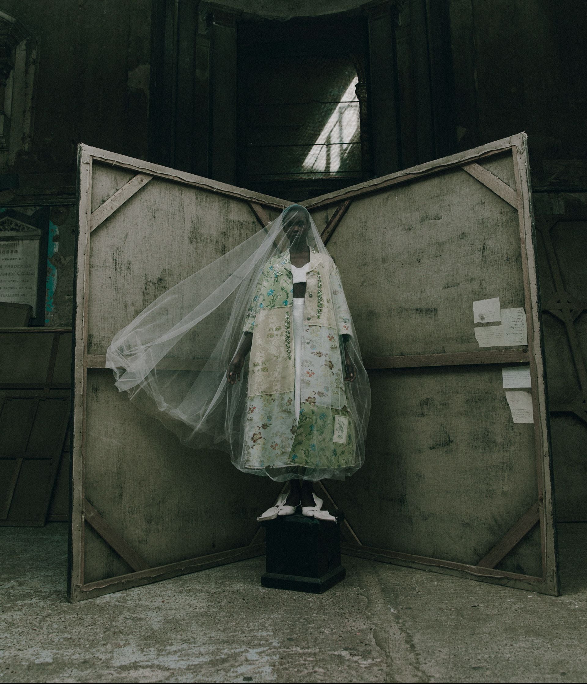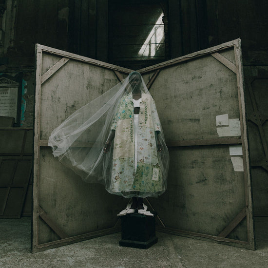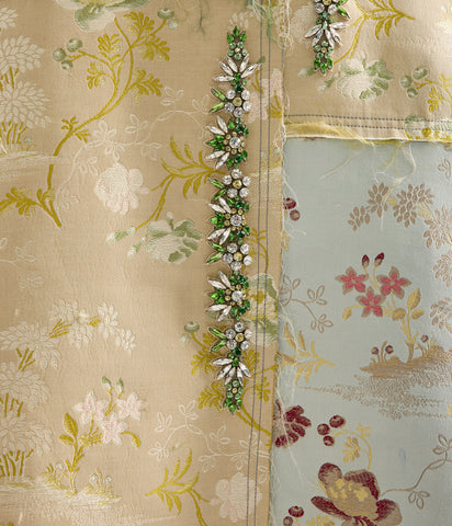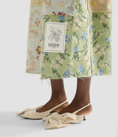 This coat is part of ERDEM’s capsule collection marking the house’s 20th anniversary. It is made from a series of contrasting floral jacquards. Raw edges enhance the ‘collaged’ aesthetic, while crystal trims provide precious embellishment. A label at the hem marks the design as a piece from the capsule collection.
