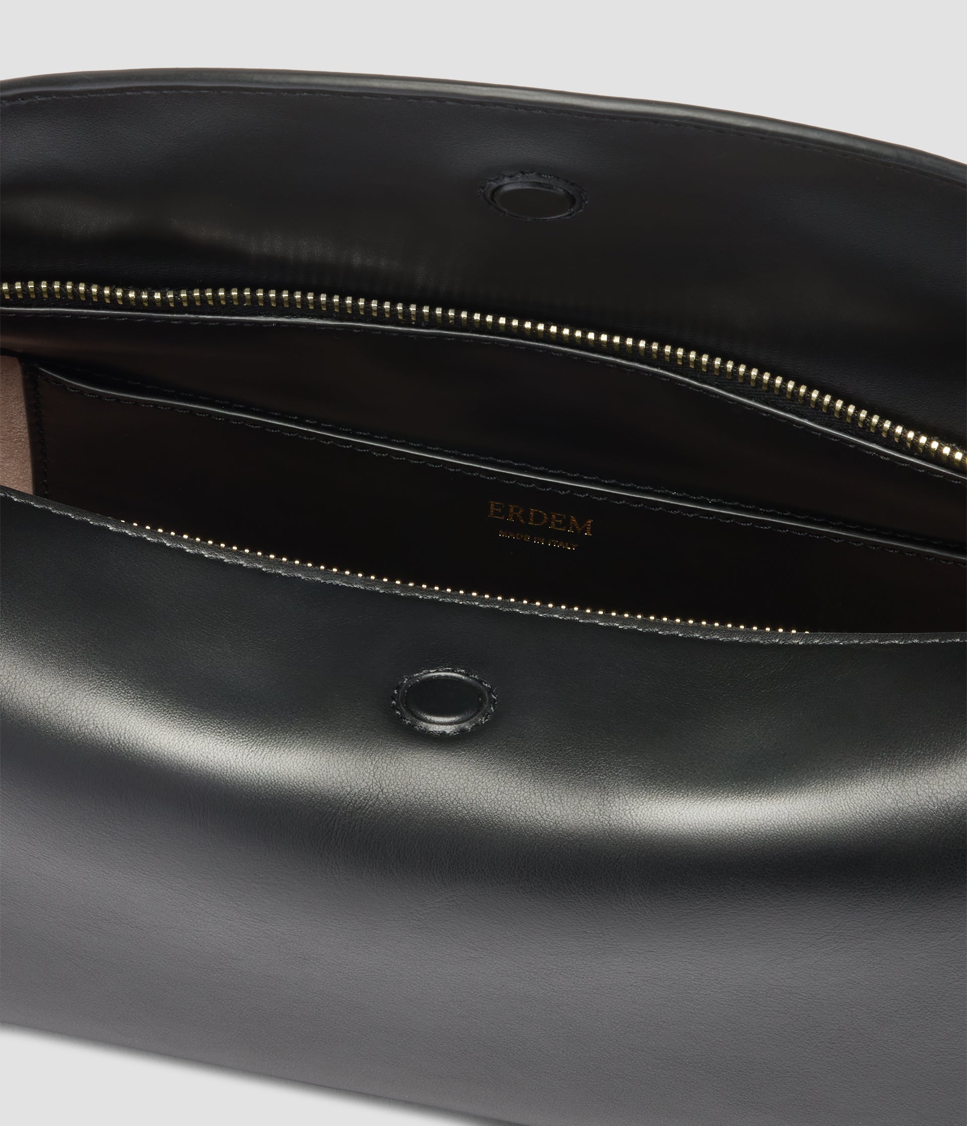 100% Calf Leather. Lining: 100% Kid Suede. Handle:100% Brass.