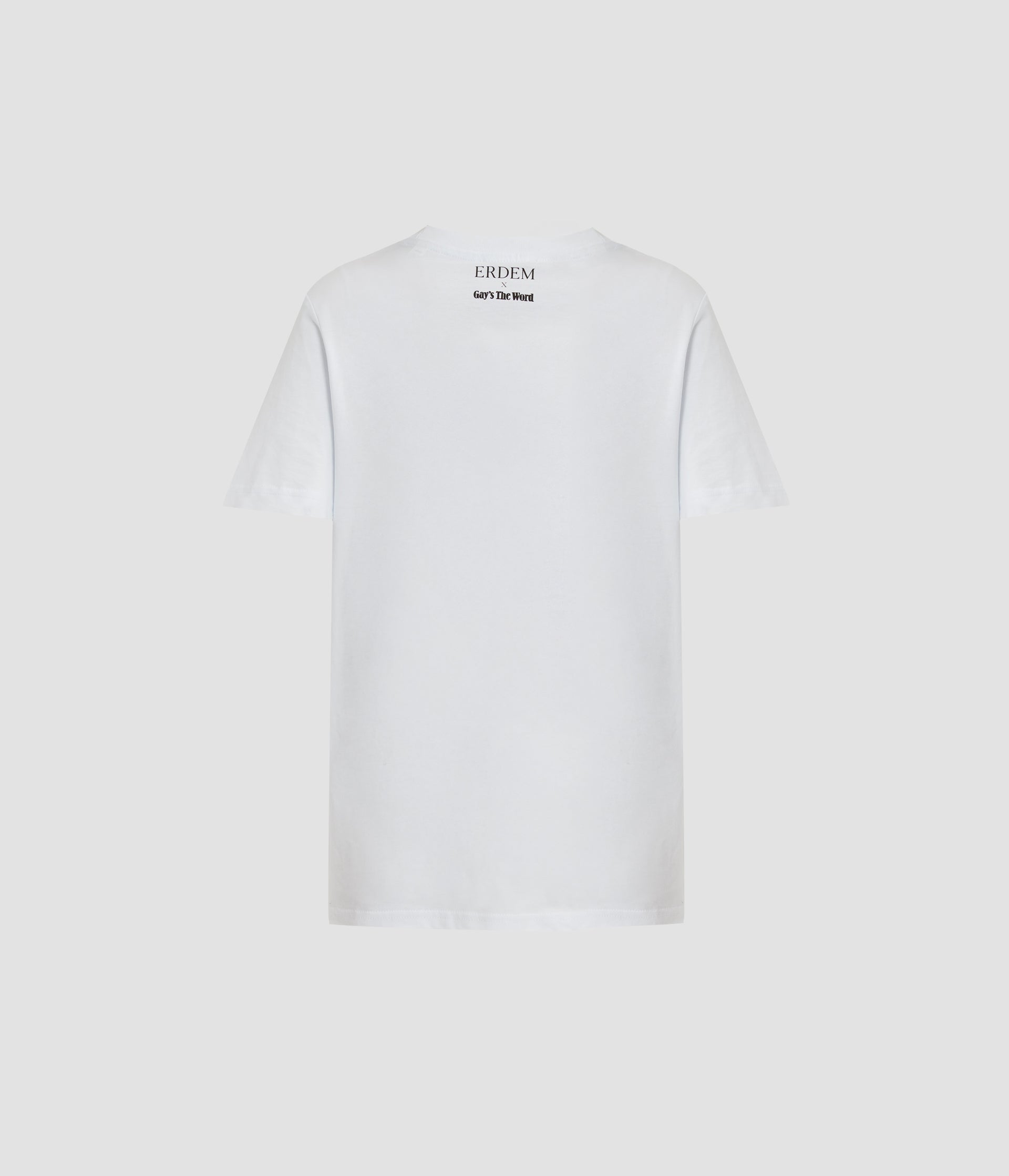 Designed by ERDEM and created in collaboration with Gay's The Word, UK's oldest LGBTQIA+ bookshop, this unisex T-shirt features light blue, pink, and white carnation flowers, celebrating the colours of the Transgender Pride Flag, alongside a green carnation - a powerful symbol of queer identity.
