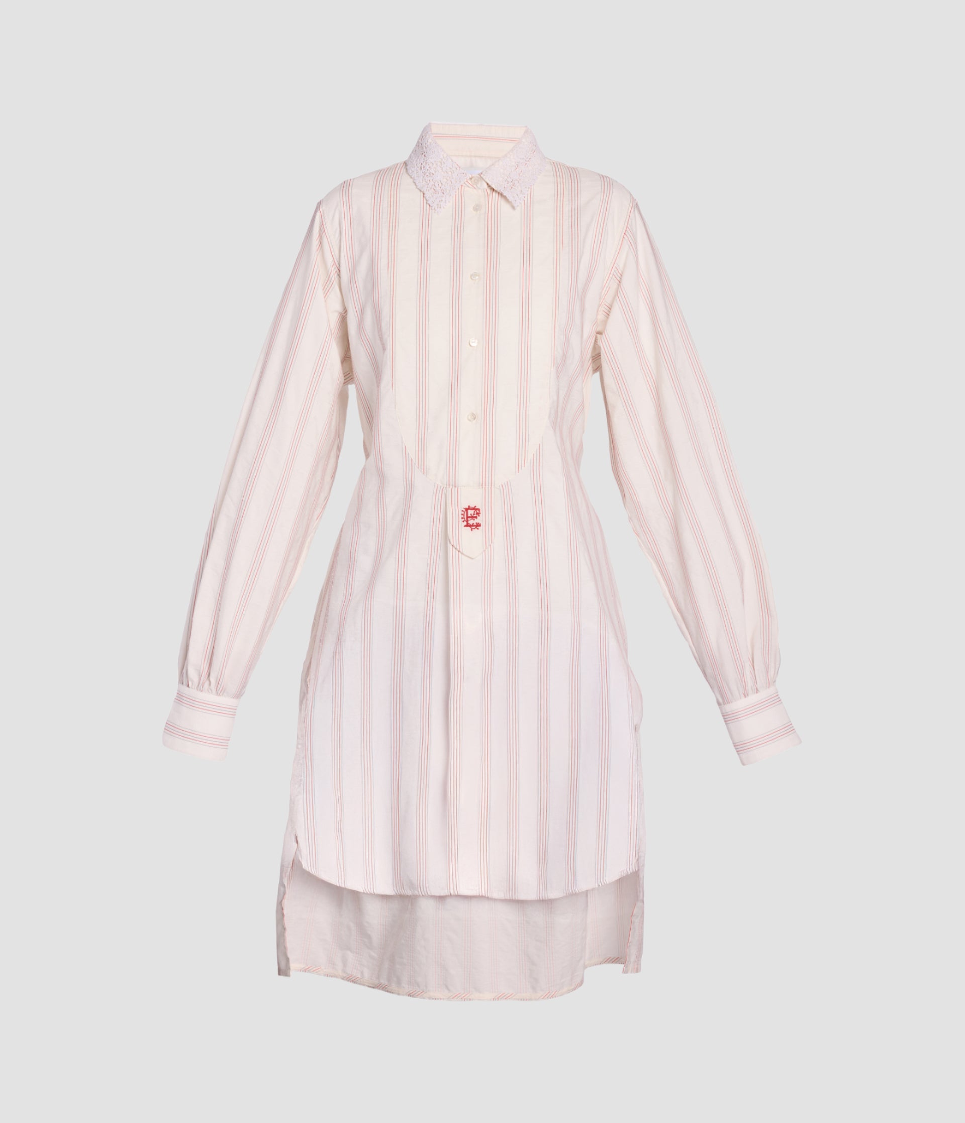 Ditsy Cotton Stripe Long Sleeve Mini Shirt Dress