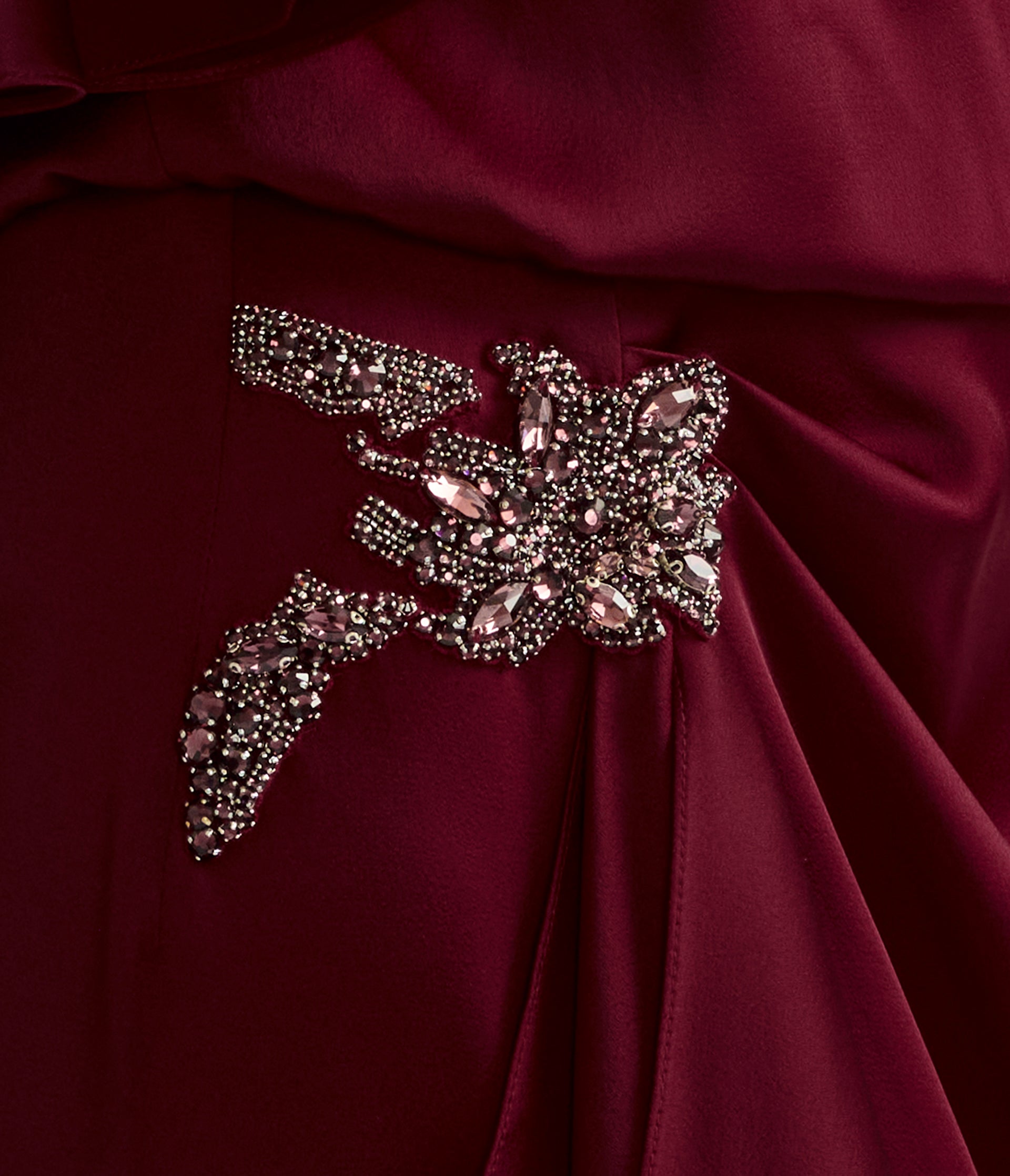 71% Acetate, 29% Viscose, Lining: 73% Acetate, 27% Silk Embroidery: 40% Brass, 40% Glass, 20% Nylon