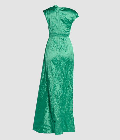 Embellished Textured Satin Draped Gown