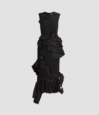 Embroidered Grain De Poudre Midi Pencil Dress
