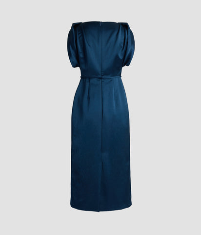 Embroidered Heavy Satin Short Sleeve Midi Dress