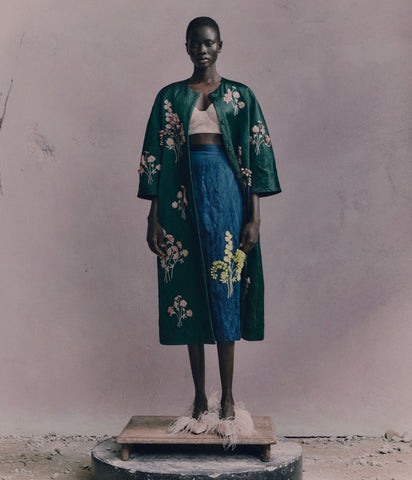 The conversation between past and present inspires the Pre Fall 2026 collection, by Erdem Moralioglu. Shaped by the spirit of self-expression, tattoo-like motifs appear as small emblems of memory and mark-making, while Belle Époque references surface in lacework and the curved line.