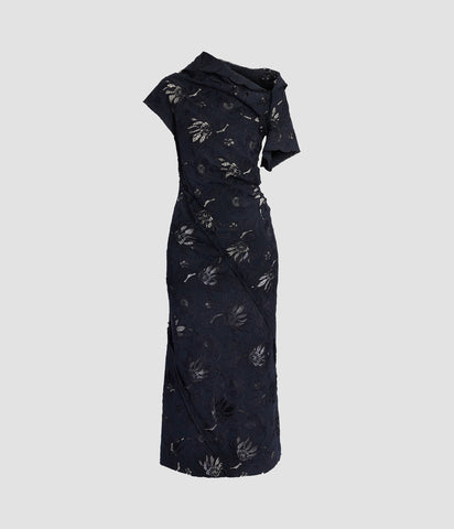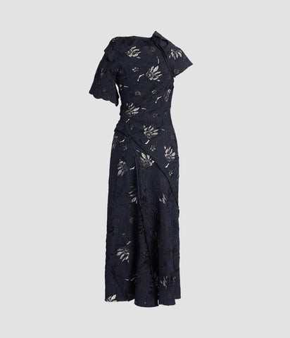 Floral Cotton Cutwork Asymmetric Midi Dress