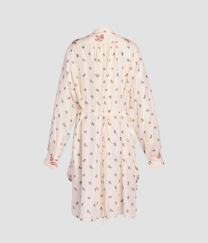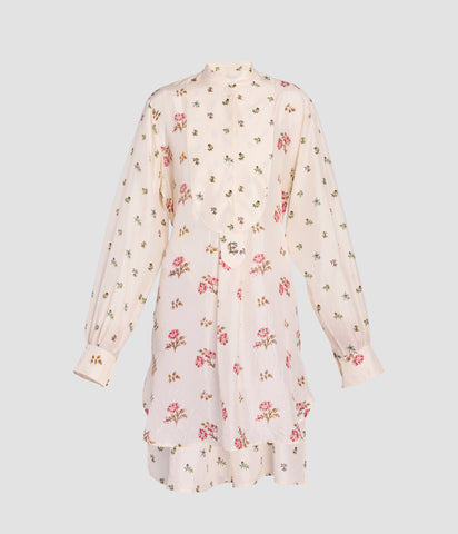 Floral Print Silk Long Sleeve Mini Shirt Dress